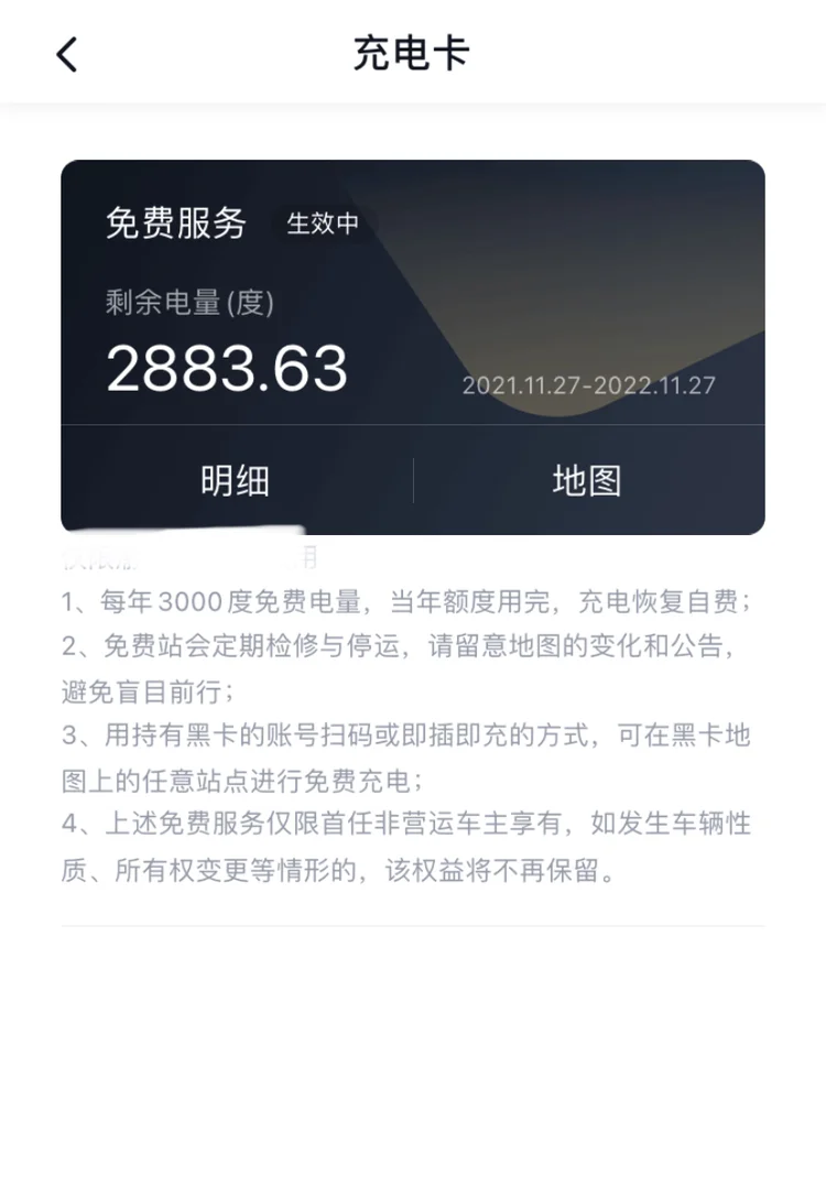 而且免费充电服务很方便,只要地图上标注了“免费”、“专享”的都可以免费充,点位很多,地图可以直接导航去。