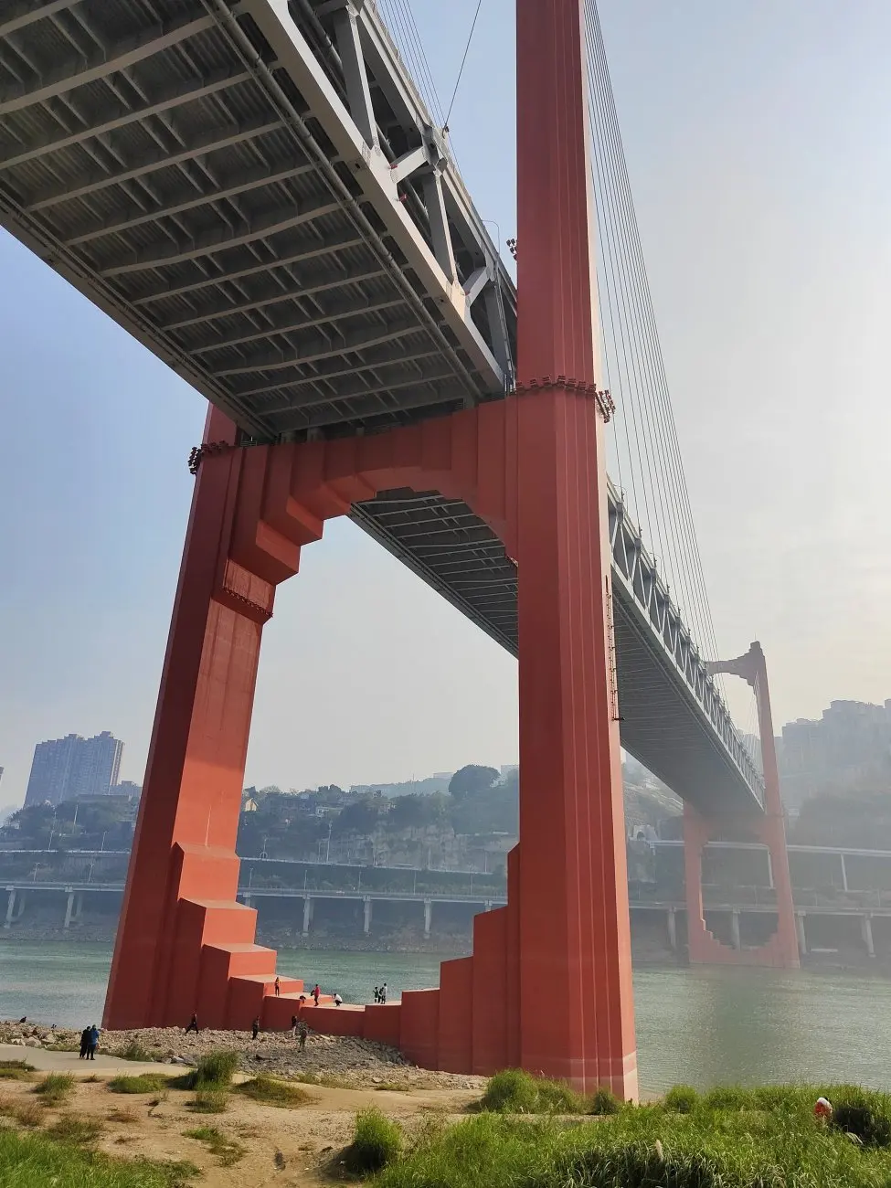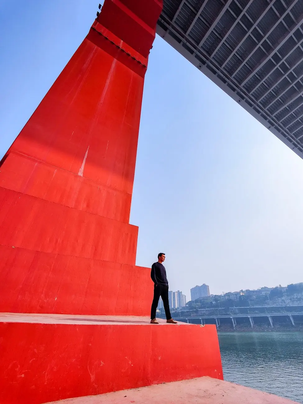 走在江边看到这处新晋拍照圣地,画面有点震撼,有路下到大桥红色桥墩处,免费滴,所以,人超多,想一个人的广角照,感觉这地处闹市根本没希望。