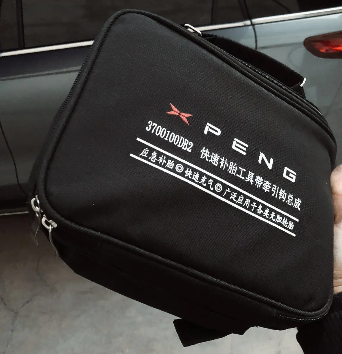 其次,需要检查的是刹车和轮胎。像我们这款车是不配备备胎的,所以我们出发前要对轮胎检查清楚(轮胎气压:P7是前2.5,后2.7;G3四个轮子都是2.5。)以及一些应急备件也要检查,比如补胎液和充气泵(我想应该有不少鹏友,不知道他们的存在)这两样东西是随车的配件,在后备箱那个黑色的手提便携袋里。