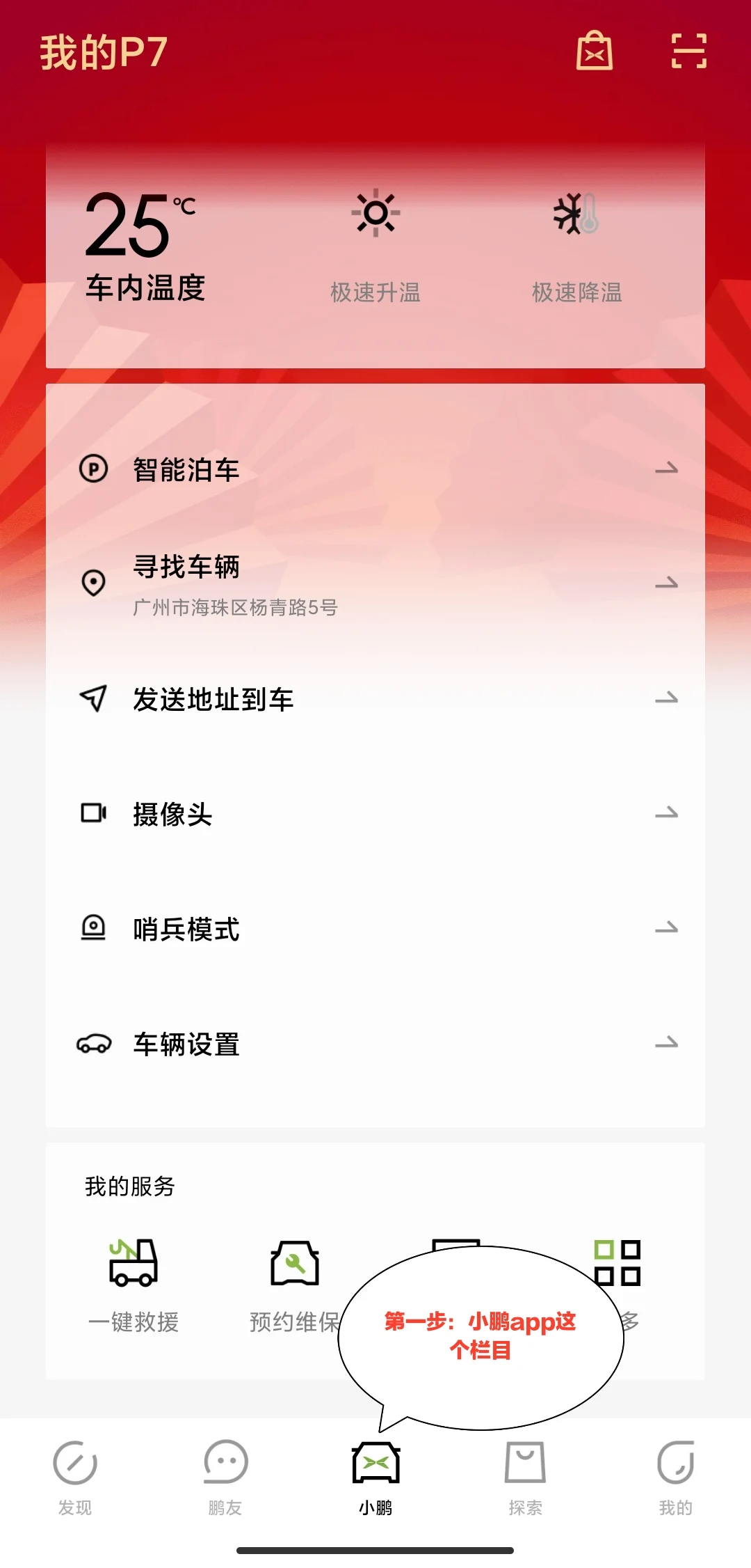 ①第一步:进入小鹏app的最下方“小鹏”按钮