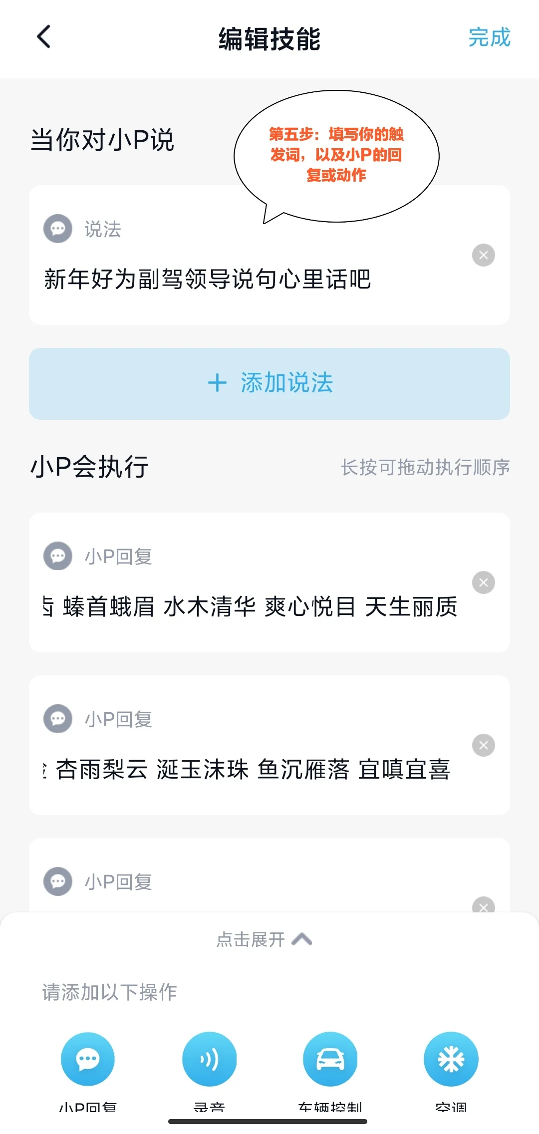 ✅最后,在车机系统唤醒小P,用新建的触发词进行互动了~快来试试玩吧~