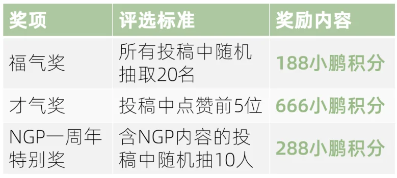 1.启程篇和返程篇获奖用户的小鹏积分将统一在活动结束后15天内发放完成。
