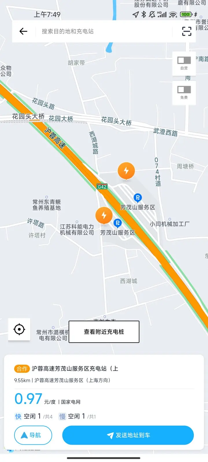 1.建议准备在该服务区等候的小伙伴可以提前在常州青龙出口下高速补能,下高速3公里内有国网,星星充电等三个集中充电站,均配置100+千瓦充电枪,充电限时免费停车。