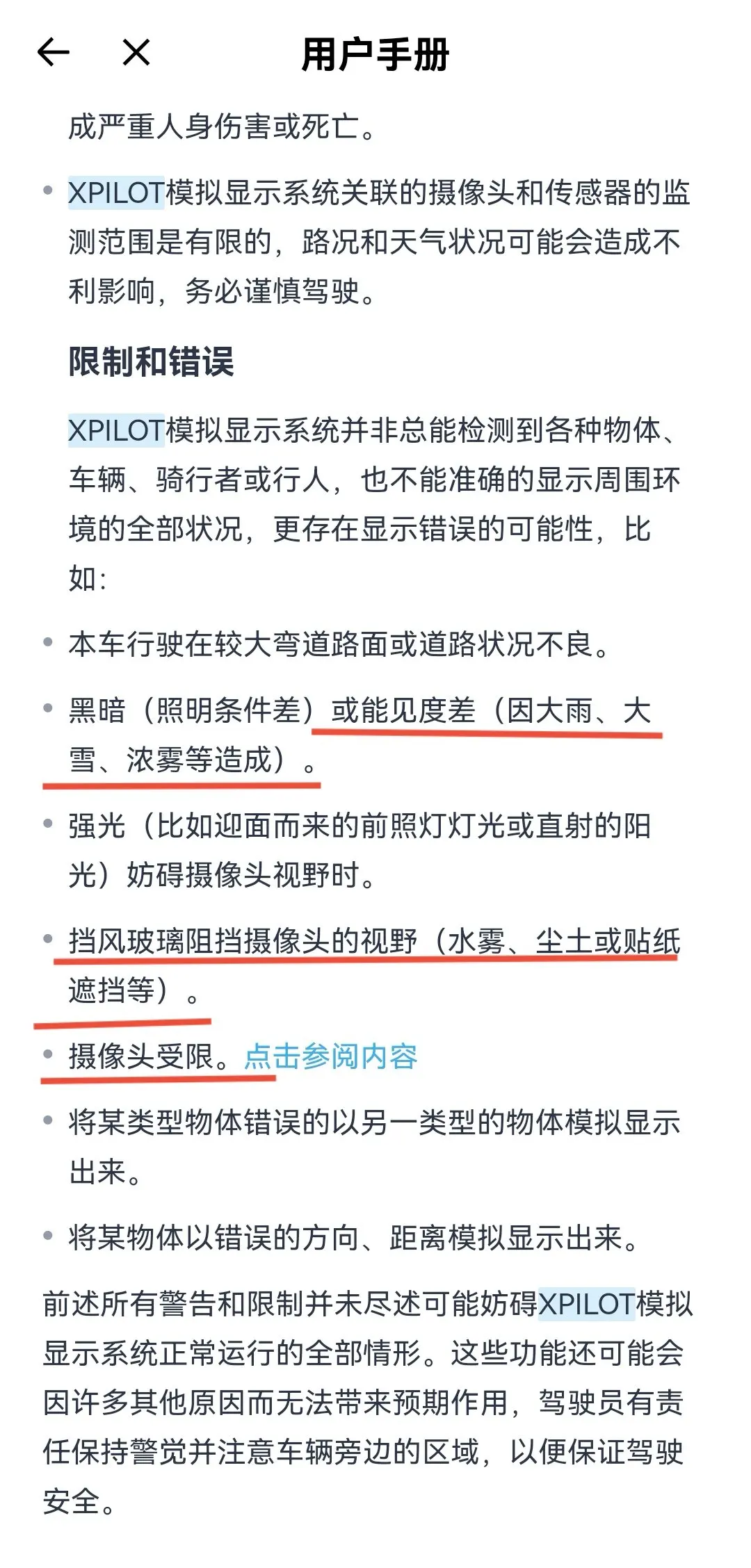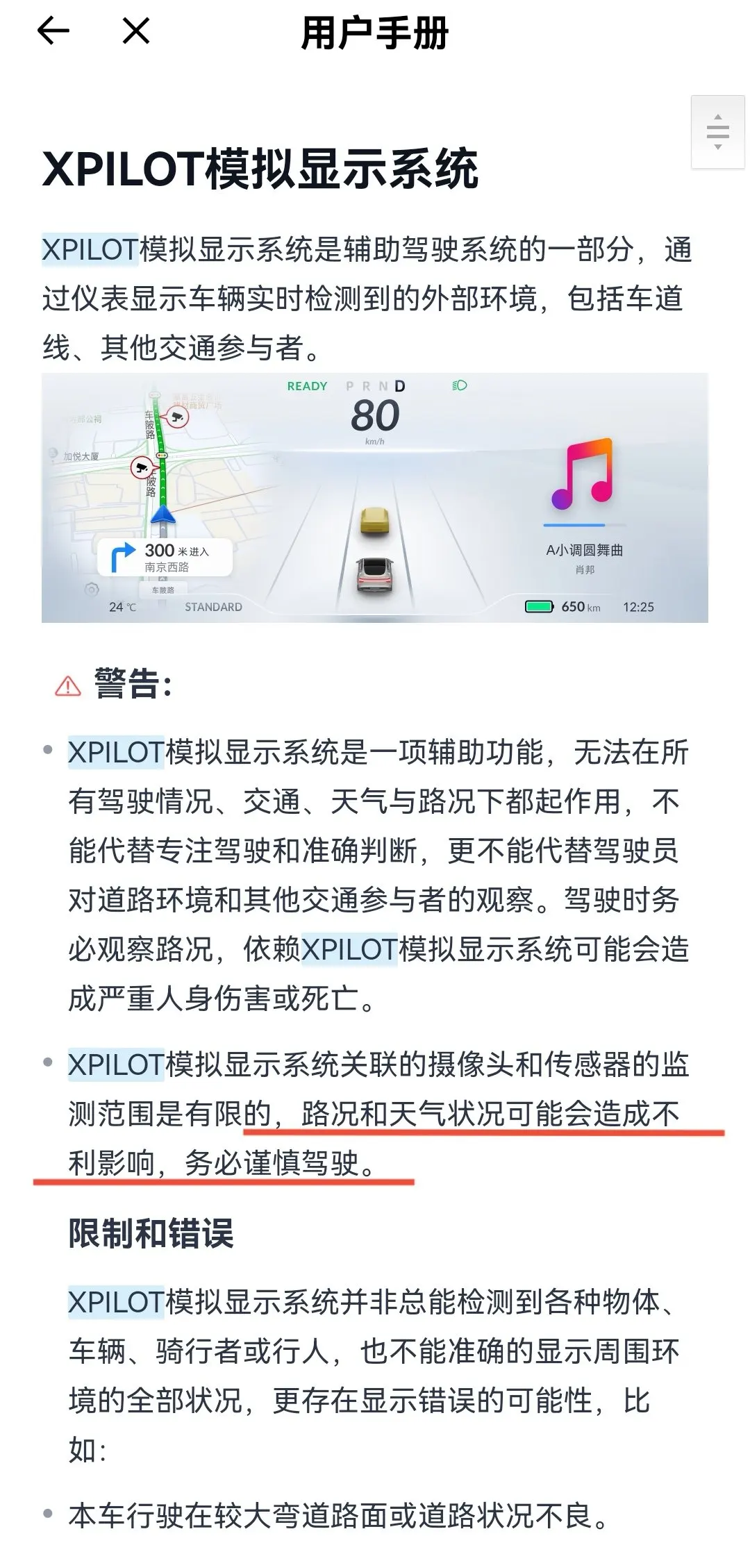 果断电话客服,并且结合用户手册学习,知道了,这是XPILOT模拟显示系统故障,产生原因,还是雪影响了感知,导致智能辅助不可用。