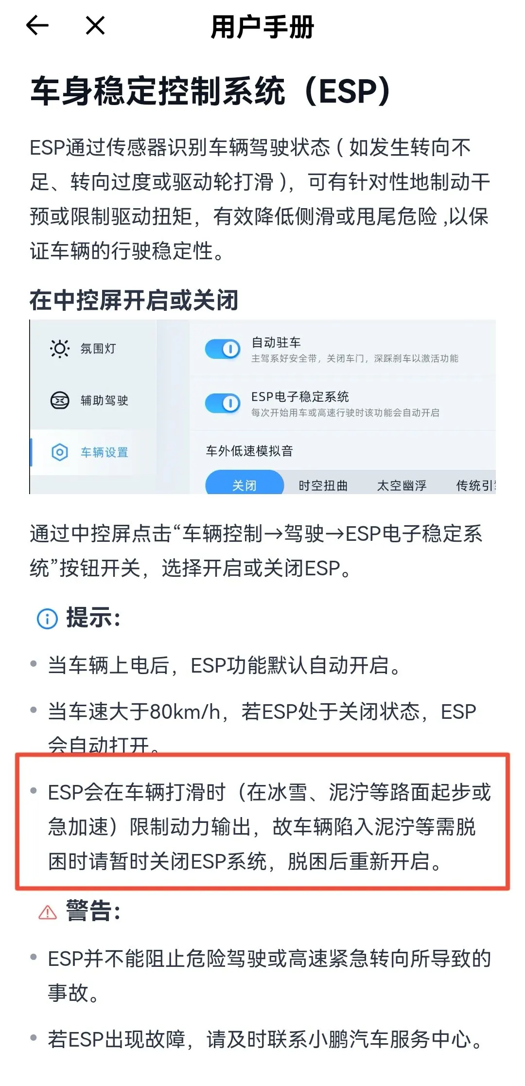 第三,在学习中还了解到,如果车子受困,还需要关闭ESP车身稳定控制系统。