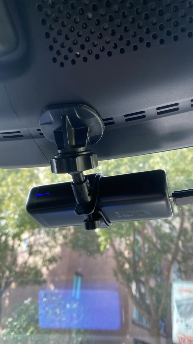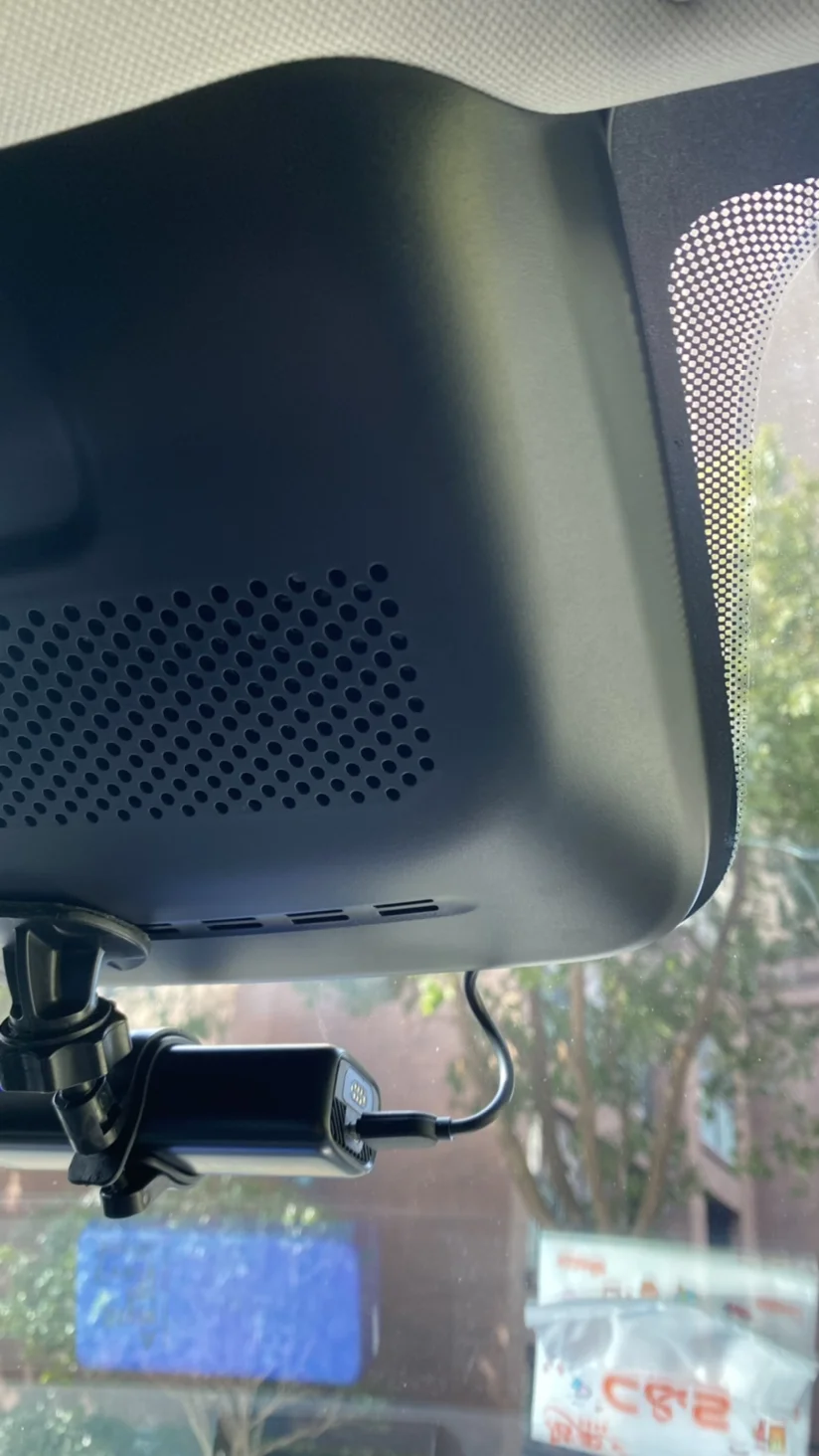 行车记录仪为线下小鹏门店用积分兑换的,受制于原装降压线变压器后段线缆长度不够,之前一直用的typec转接头安装盯盯拍mini5。主要是靠下面的typec转接头。