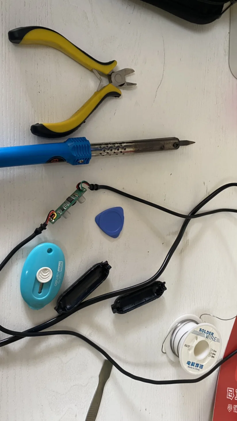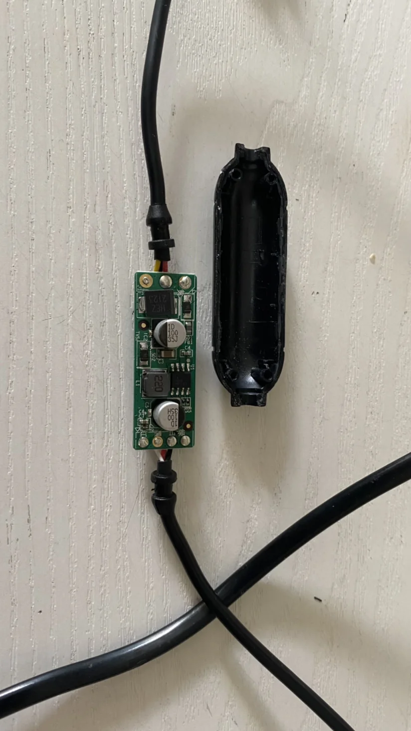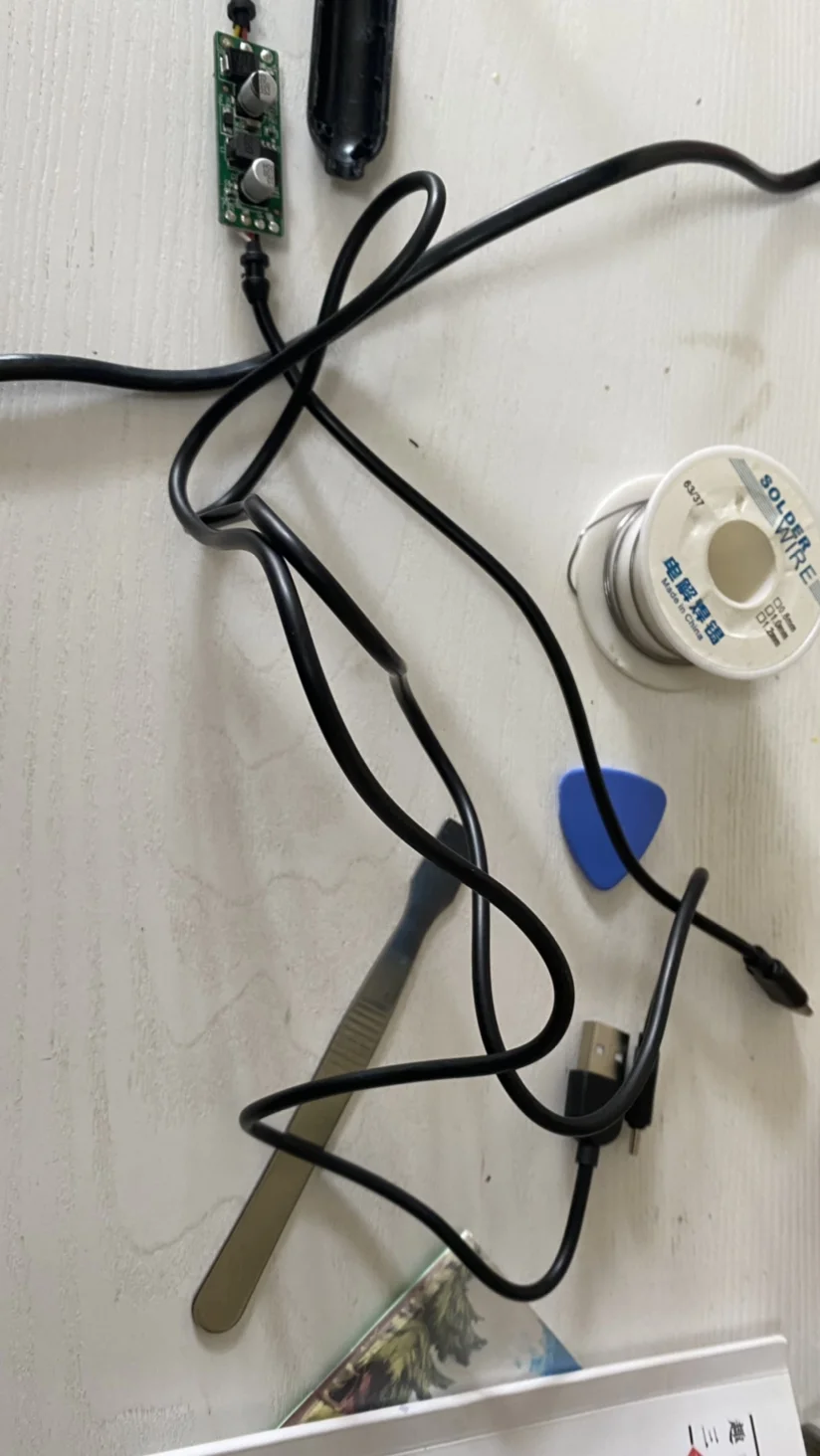 但这样一来,原装降压线长度就不够了,要么加typec延长线,要么拆前摄像头后盖打孔过线,但找遍淘宝,没有又达标又可以隐藏的typec延长线,而且拆前摄像头后盖打孔破坏原车模块,且容易进湿气,所以只能另寻他法,看到家里不少手机typec普通充电线,很符合需求,索性一不做二不休,直接拆原装降压线换掉后段的线。