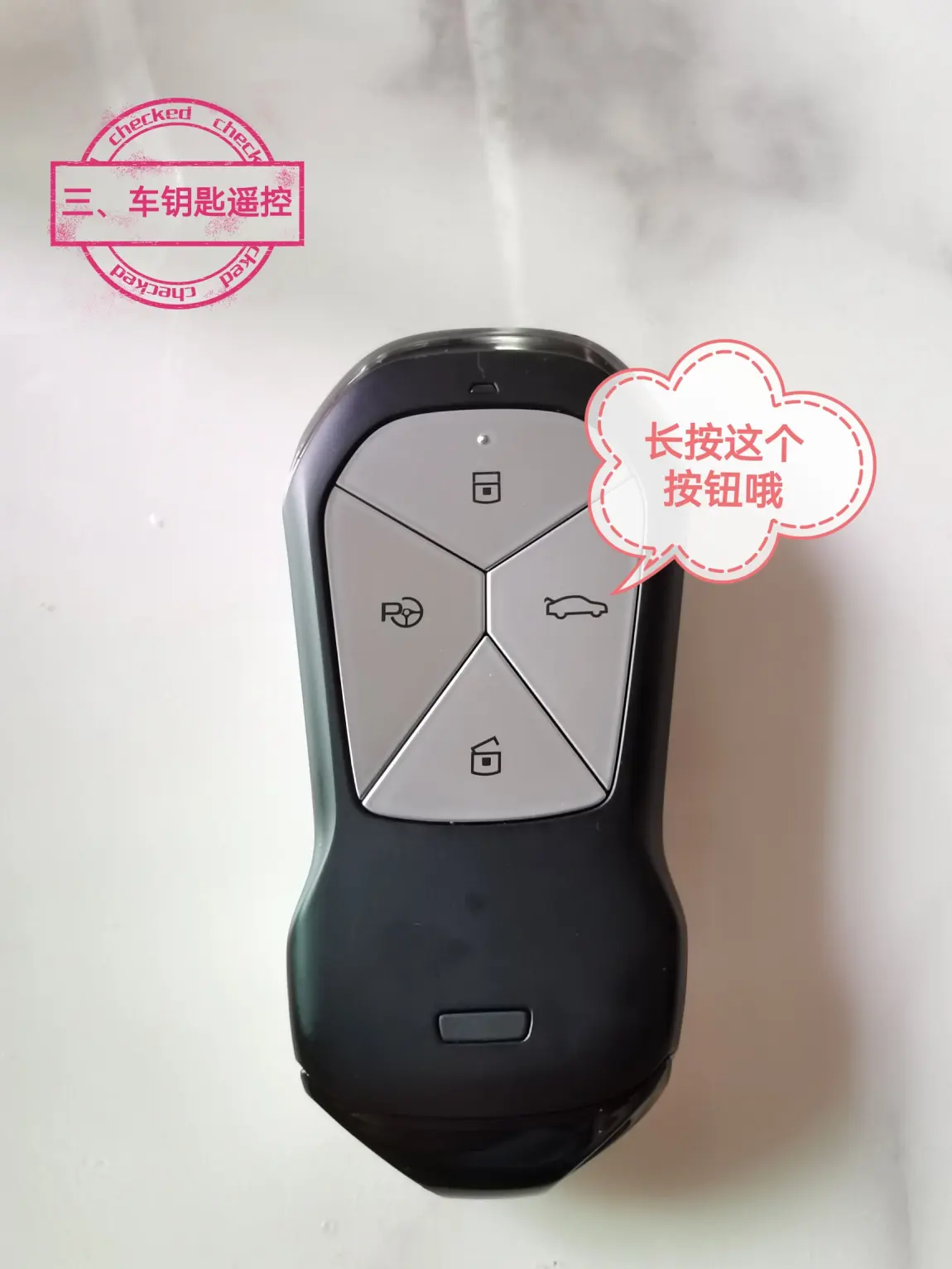 三、车钥匙控制,通过“长按”遥控钥匙右边的尾箱按钮,实现尾门的自动开启和关闭。
