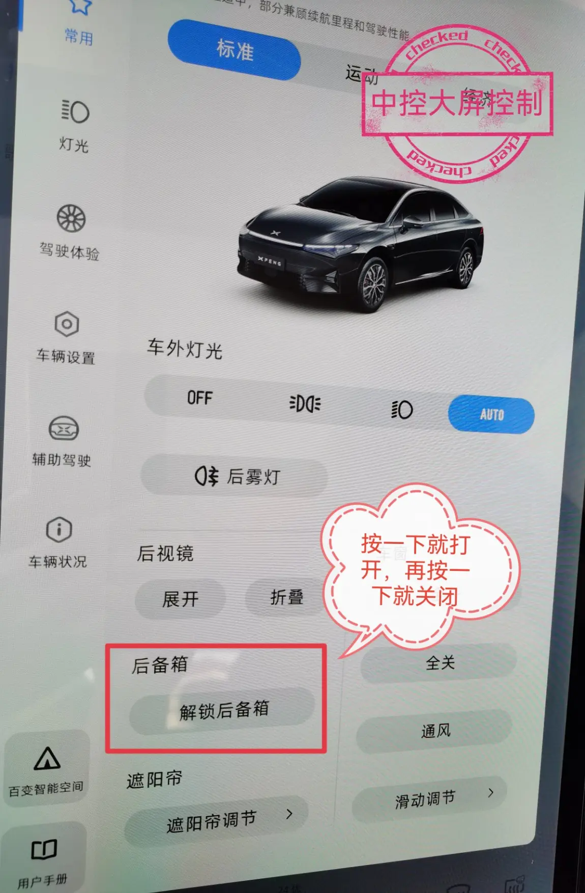 四、车内中控大屏控制,在“常用”中的“解锁后备箱”按一下就可以自动打开,再按一下就可以自动关闭。