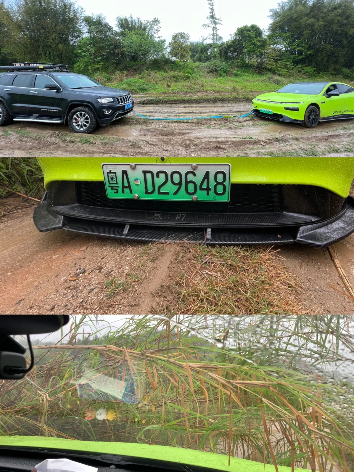 没想到新手小白,第一次露营就开启地狱模式,本想致电400小鹏救援,幸亏隔壁露营的车友带了拖车绳,帮忙拉了一把,成功脱困