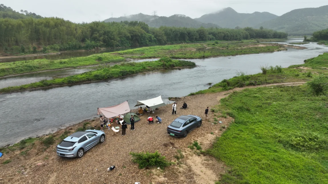 广州出发大约90分钟到达。本次出行5辆车,小鹏P7,小鹏P5,即刻001,毛豆3,小奔