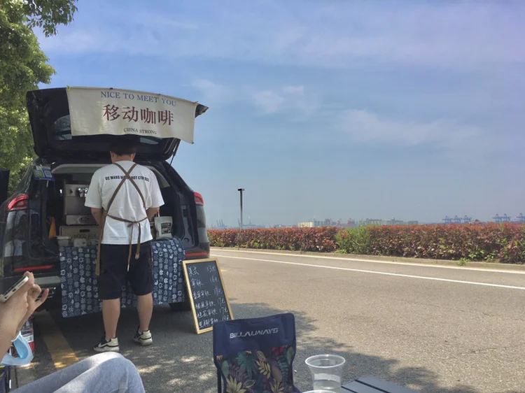 后面我们把车停好,走去公路咖啡的摊子买2杯咖啡。