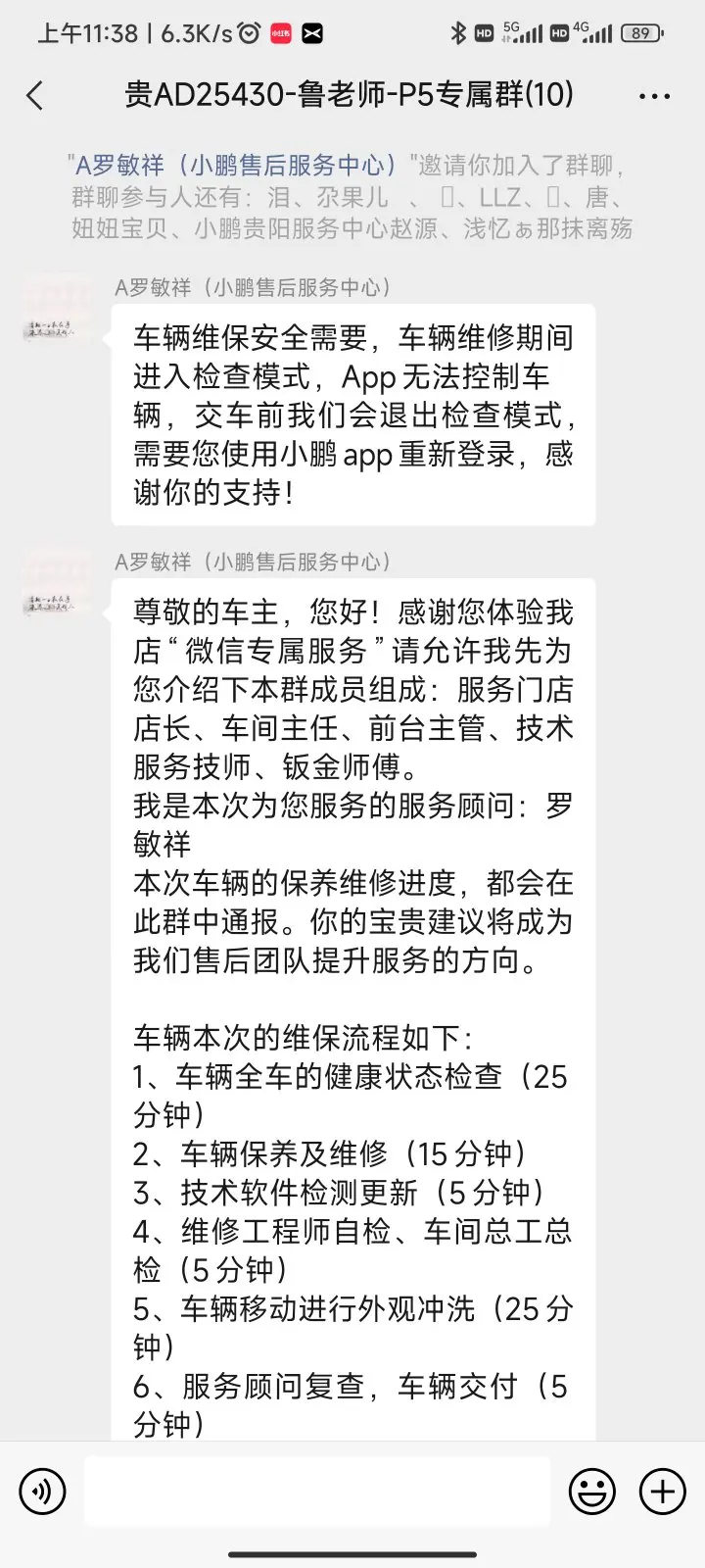 在等候的时候,小鹏这边还建了一个微信群,随时在里面上传视频和照片,以及通报保养进展😁
