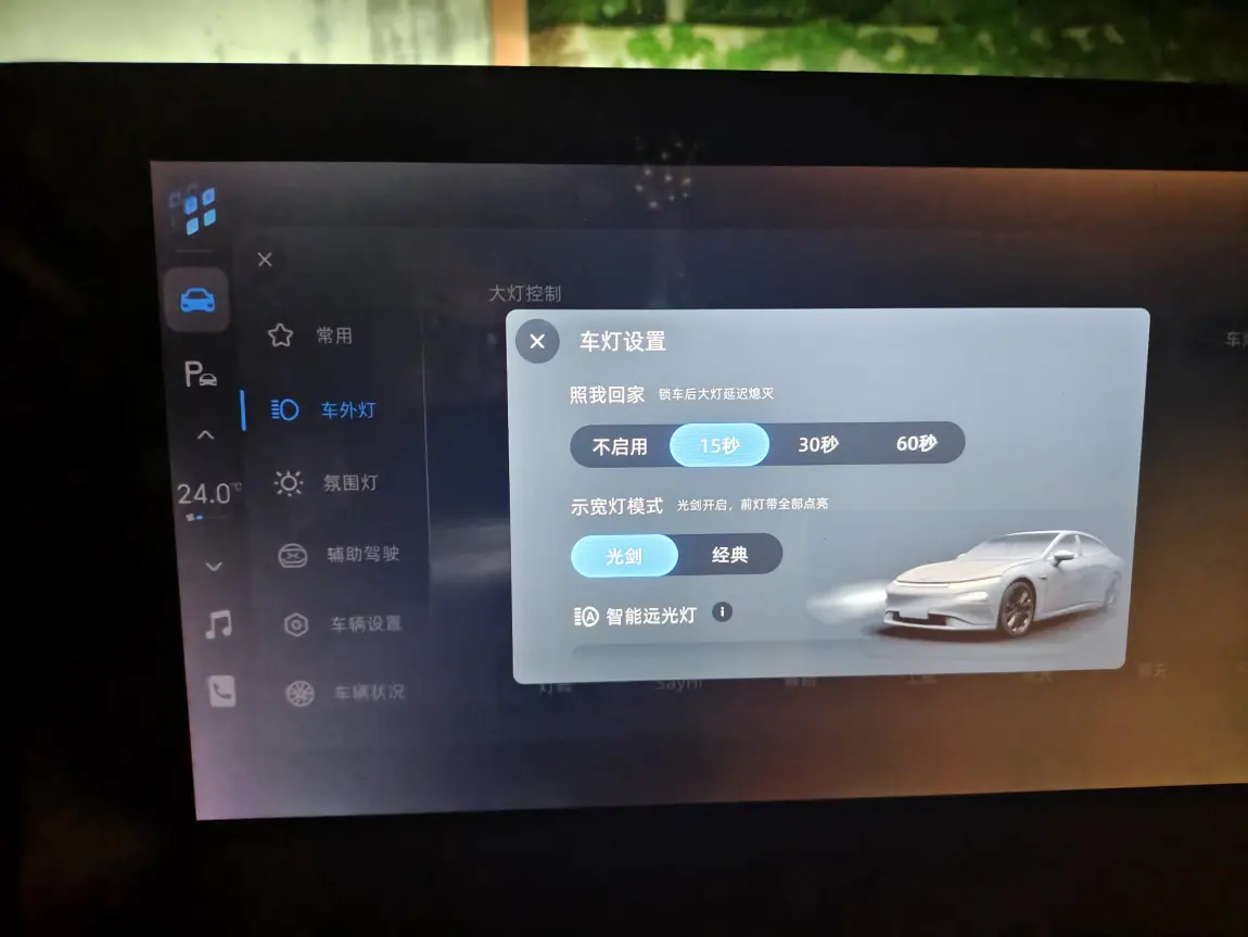 如果在照明条件不好的地方停车回家,道路黑乎乎的咋办,可以用这个功能,可以设置时间、想起来一句歌词、让小鹏点灯、照亮你回家的路。可以设置15/30/60秒,都可以!