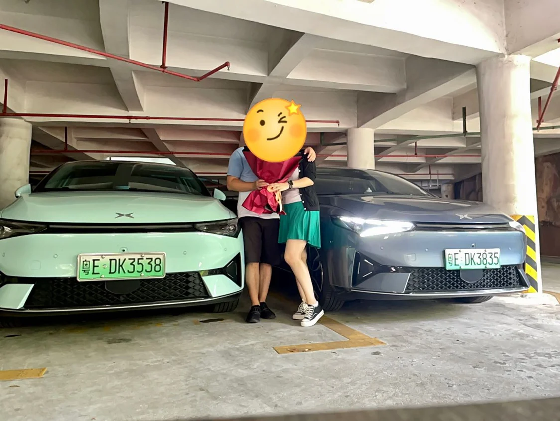 我是今年3🈷️订车,他是上年11月订车,在今年5🈷️提车,在新手群相遇了,第一眼看到他在群里的名称是EDK3538,我揉了揉眼睛,是我眼花吗?再看一下自己的车牌,于是主动跟他打招呼,于是我们开始私聊,原来大家都是自选不到,随机机选的牌,一来一往就这样私聊了一个月,日常生活到工作家庭,无话不说,终于今天他过来见面了,相隔一百多公里,期待了一个月,我们的胖虎终于可以合照了,他还带上一大束玫瑰花,一大袋零食,太惊喜了,感谢小鹏,让我们有缘相遇!