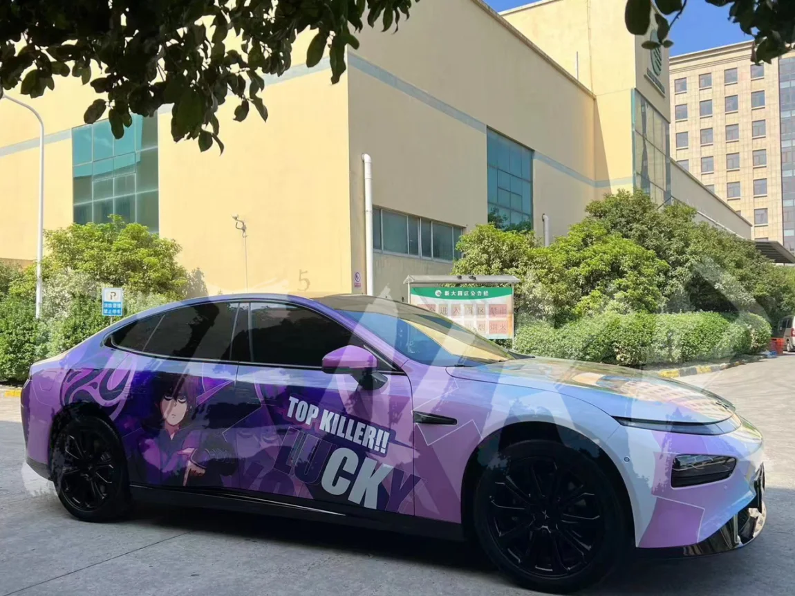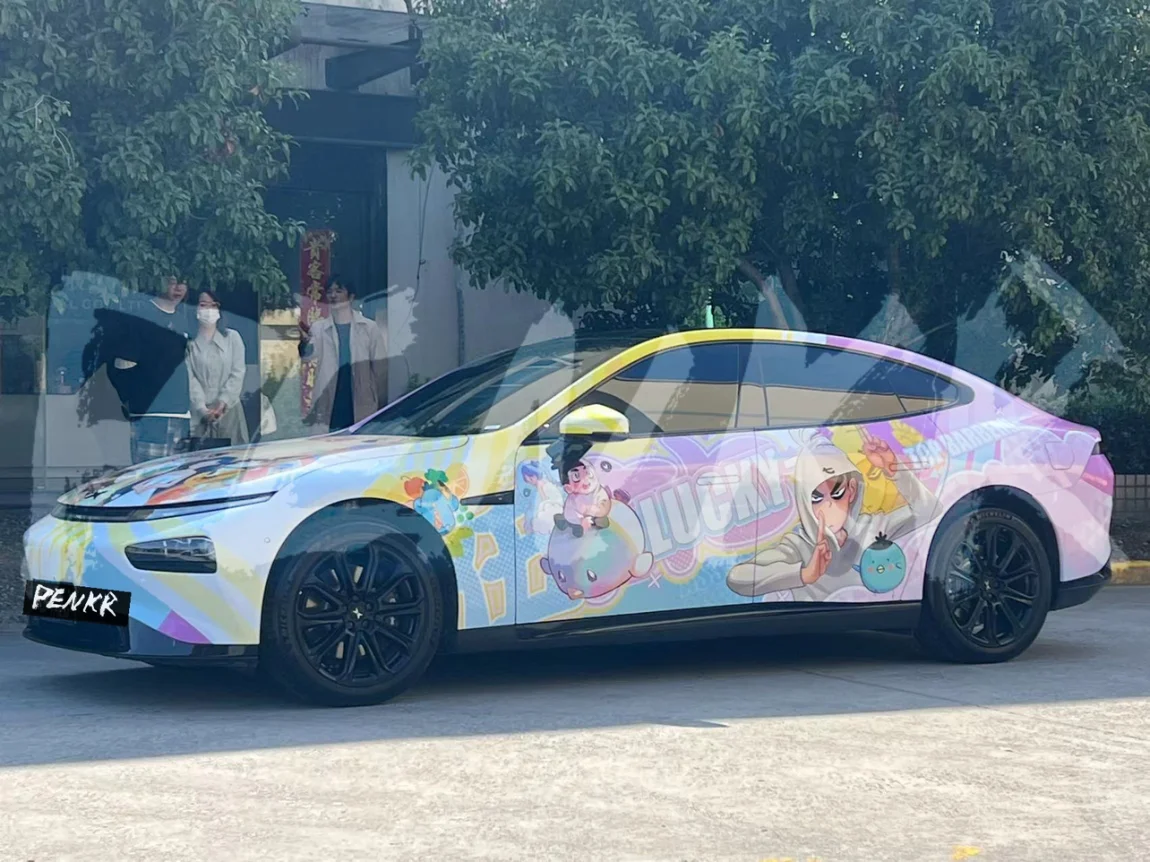 之前在鹏友圈刷到了小鹿的p7改色,一眼就喜欢上了那种渐变风格,本来寻思搞一个差不多的,经过多方打听到了是在鹏氪定制的定制改色@薛薛欧尼 联系上了小姐姐,可以定制属于自己的风格,我觉得挺好就提供了我比较喜欢的一个漫画元素(刺客伍六七,国产动漫也挺好支持国产),然后我名字简写里面有ck于是想着lucky意喻着幸运的ck就加上了lucky的字母,成品图出来过后我特别喜欢那突出的ck简直就是punchline,非常用心。现在我也拥有在路上一眼就能认出来是我的车的感觉了,非常棒!#私人定制# #P7贴膜#