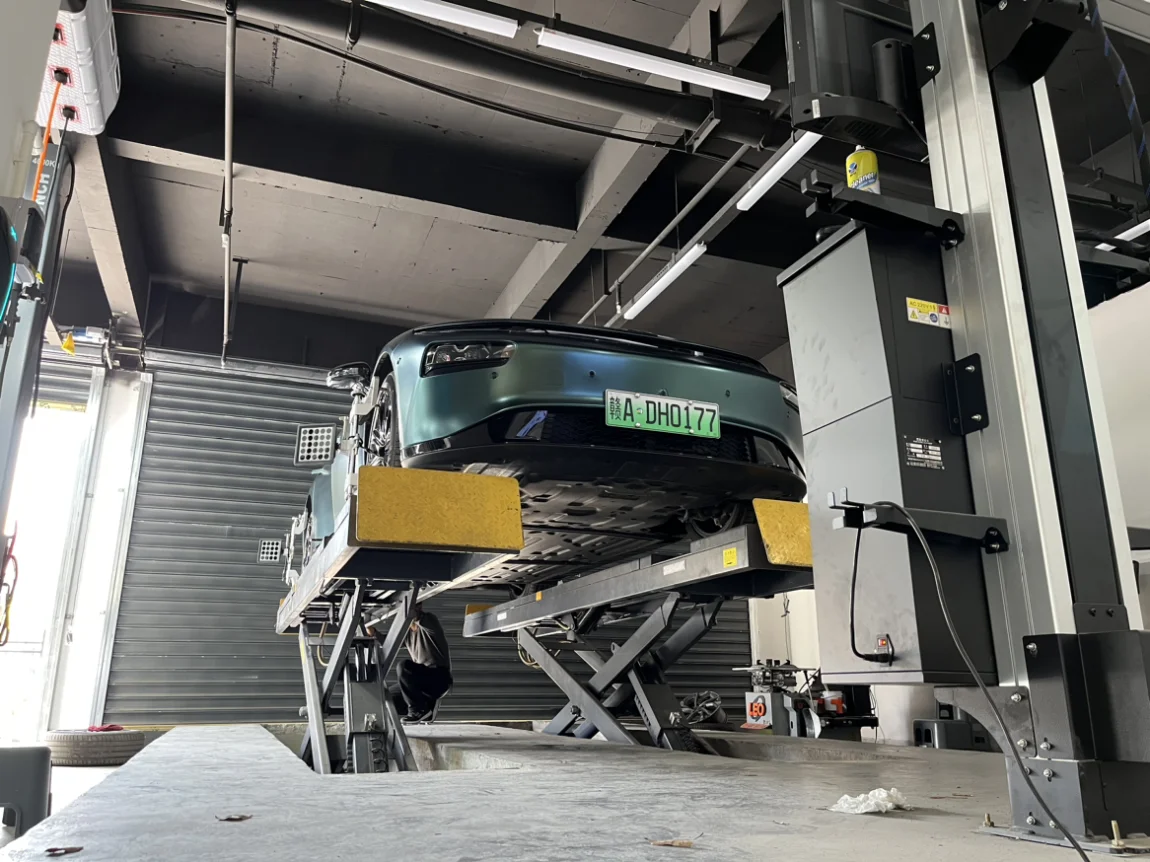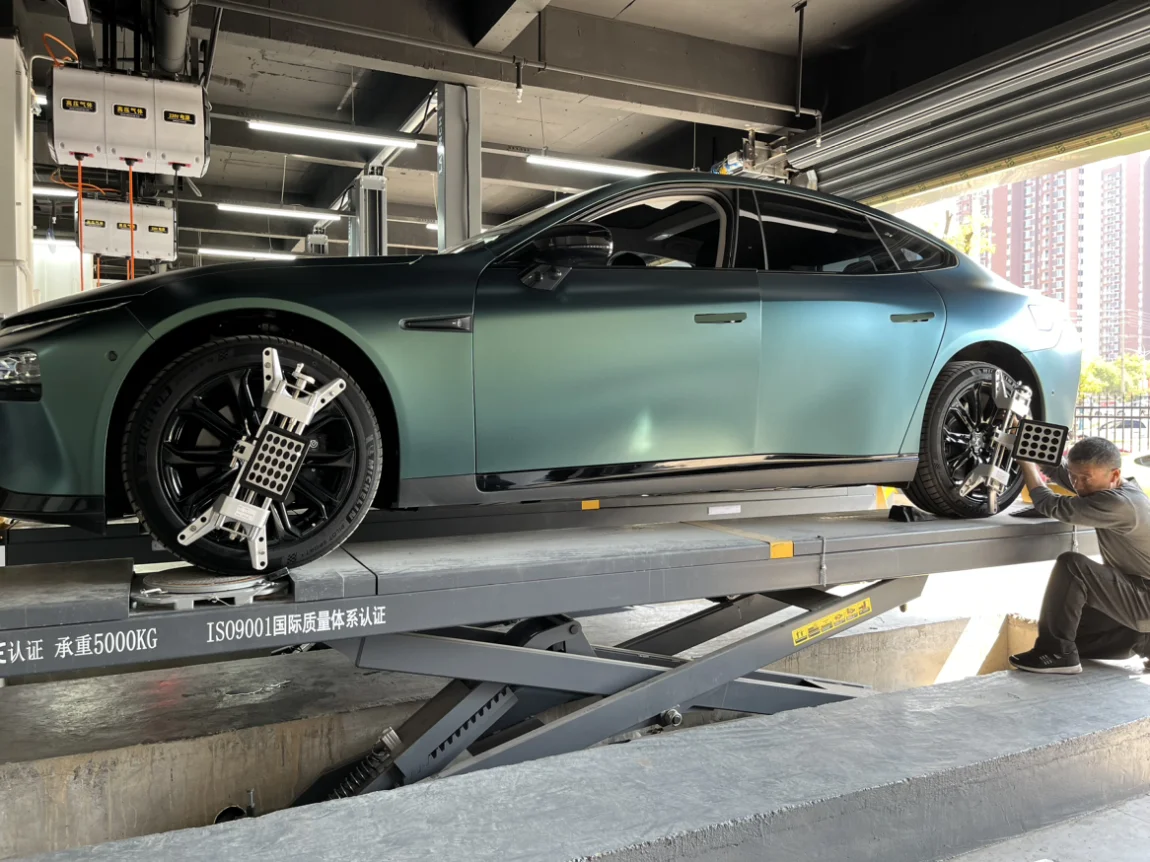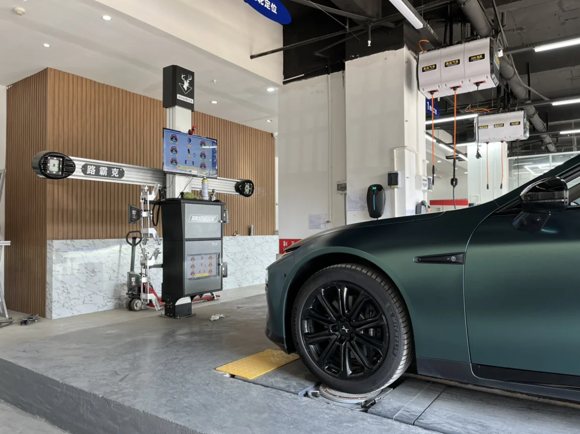 『四轮定位』既然跑偏就安排上,车辆上架,进行定位。