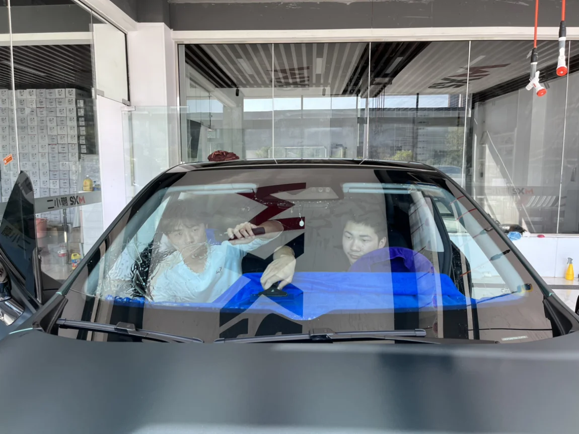 『选膜』因为全车选的是鹏悦膜,所以这次前档也一样重新贴之前的。继续前往售后合作店膜小二贴膜。