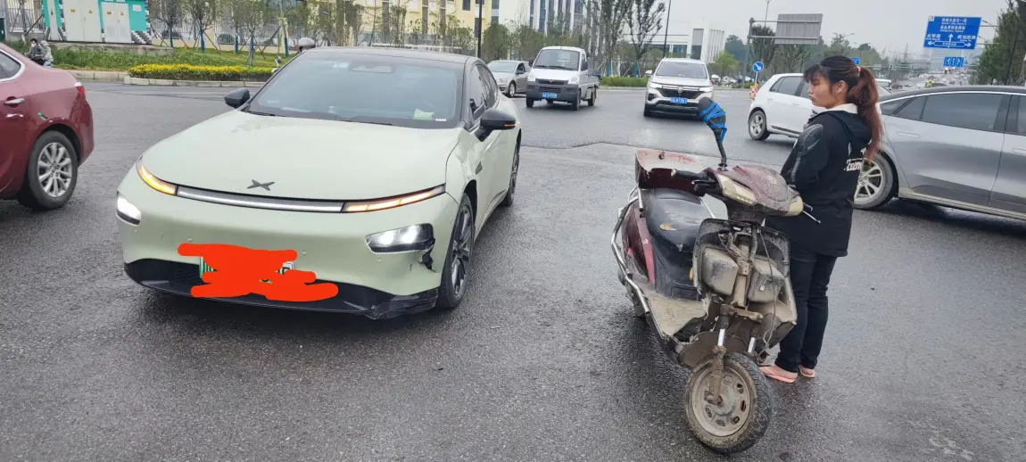 10月11日,那是个阴雨天下午,开着P7听着音乐,送家里小朋友去上学。十字路口缓行礼让行人,结果遇到了,一个电瓶车毫无征兆的从盲区串了出来,完全不给反应的时间,撞上了。