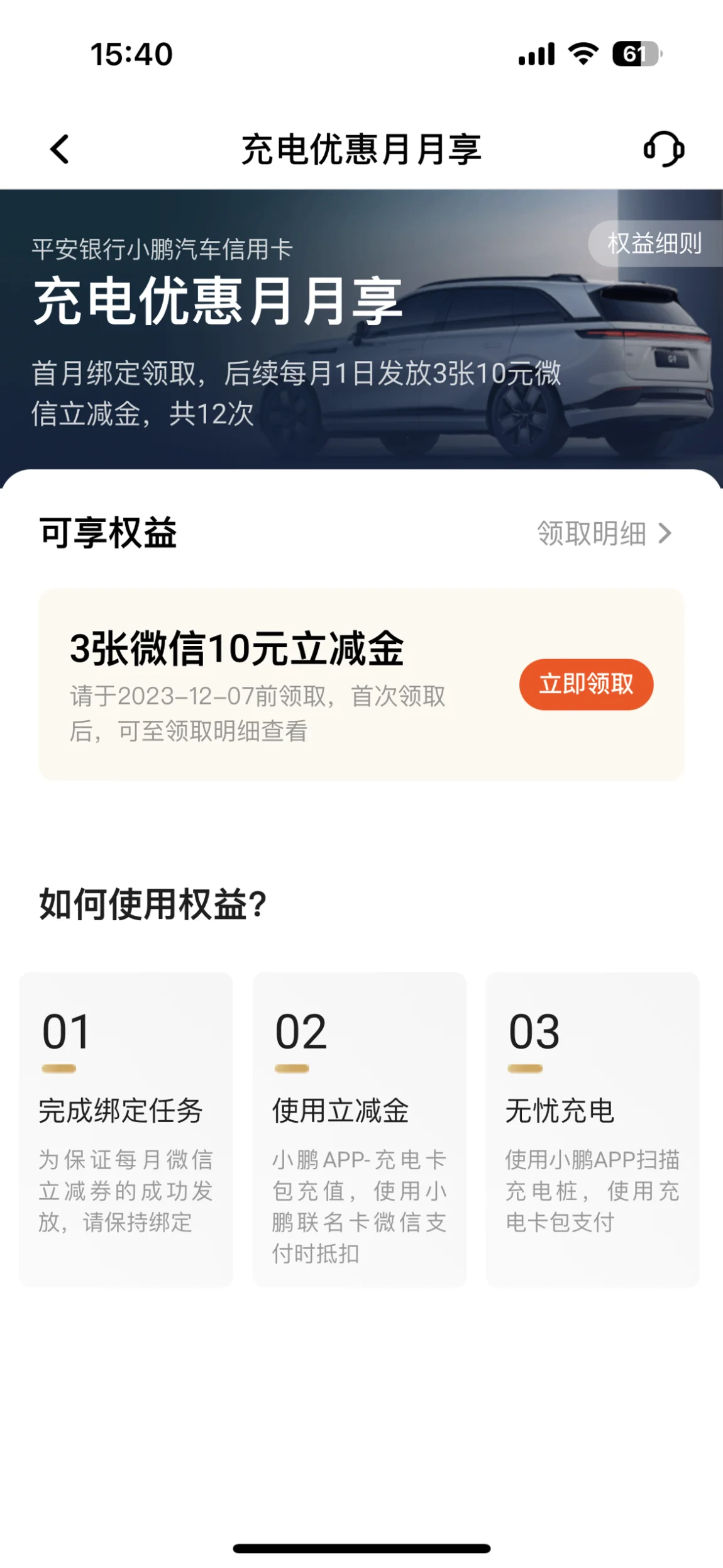 #小鹏×平安银行# #晒出我的G9订单# 平安信用卡联名卡大家办起来首先,颜值特别高,颜值控必须冲再次,所有的消费都可以自动转换为小鹏积分(积分制是50万里通积分为1小鹏积分,因为我没有在平安储蓄卡,所以我是消费100元积累1小鹏积分,所以存一点钱在储蓄卡。 这样积分更多!)最最心动的是!每月有送30元的充电减免券鹏友们给我冲~