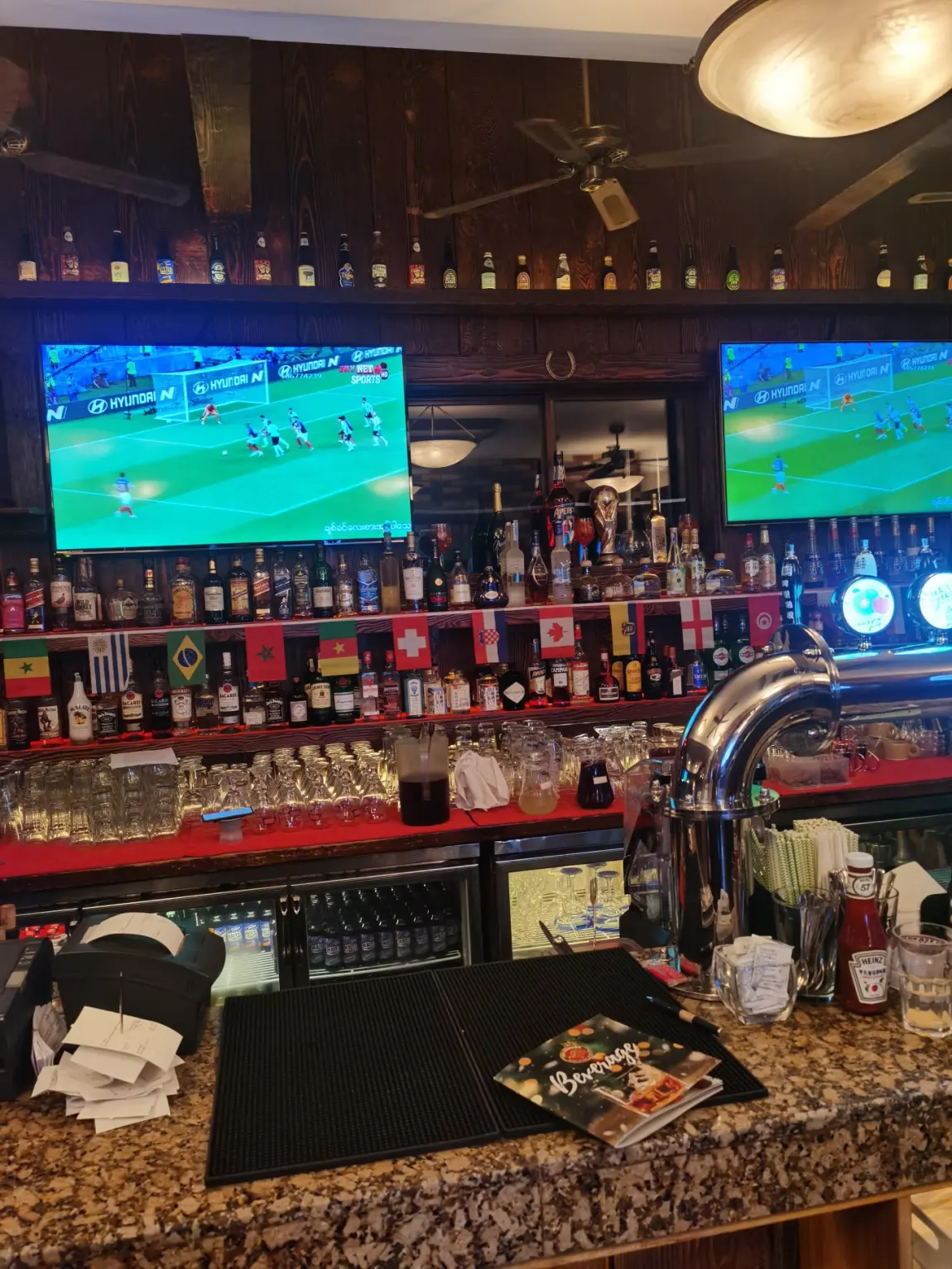 开心。和许多新朋友一起观看世界杯。酒吧里的氛围很热闹。小鹏包了一大半位置。老外球迷都得靠边站。感谢小鹏做美女工作人员们。#上海朋友时光#鹏友时光