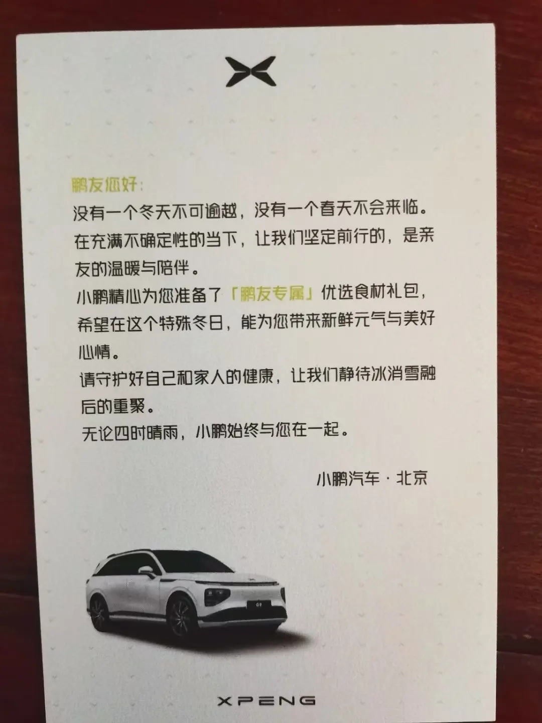疫情见真情,鹏场暖心防疫大礼包,暖人心!原本想着明天上班去买菜的,紧急通知继续居家,现在这个时候,原来物流最快的京东,也要三四天才能送到,鹏场这波暖心操作真实解了我的燃眉之急,作为小鹏车主,真的感动到了!感谢鹏场,感谢北京的工作人员!#抗疫 鹏友在行动#