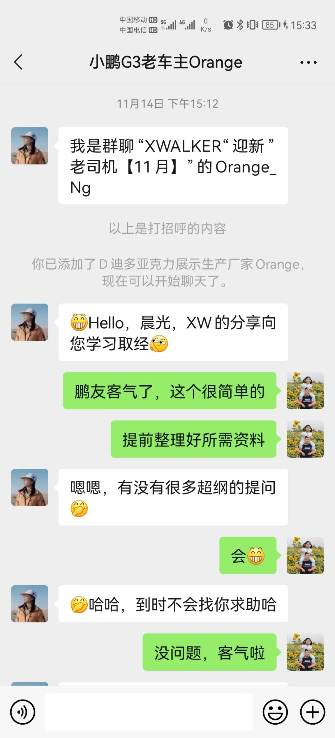 11月10日,我参加了小鹏汽车XWALKER“迎新”活动。有幸以老司机的身份加入到鹏友迎新群,为新鹏友们分享自己的用车经验,为新鹏友解答问题。