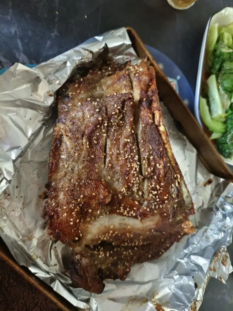 周日自己在家烤羊排,再来一杯乌龙茶,解腻