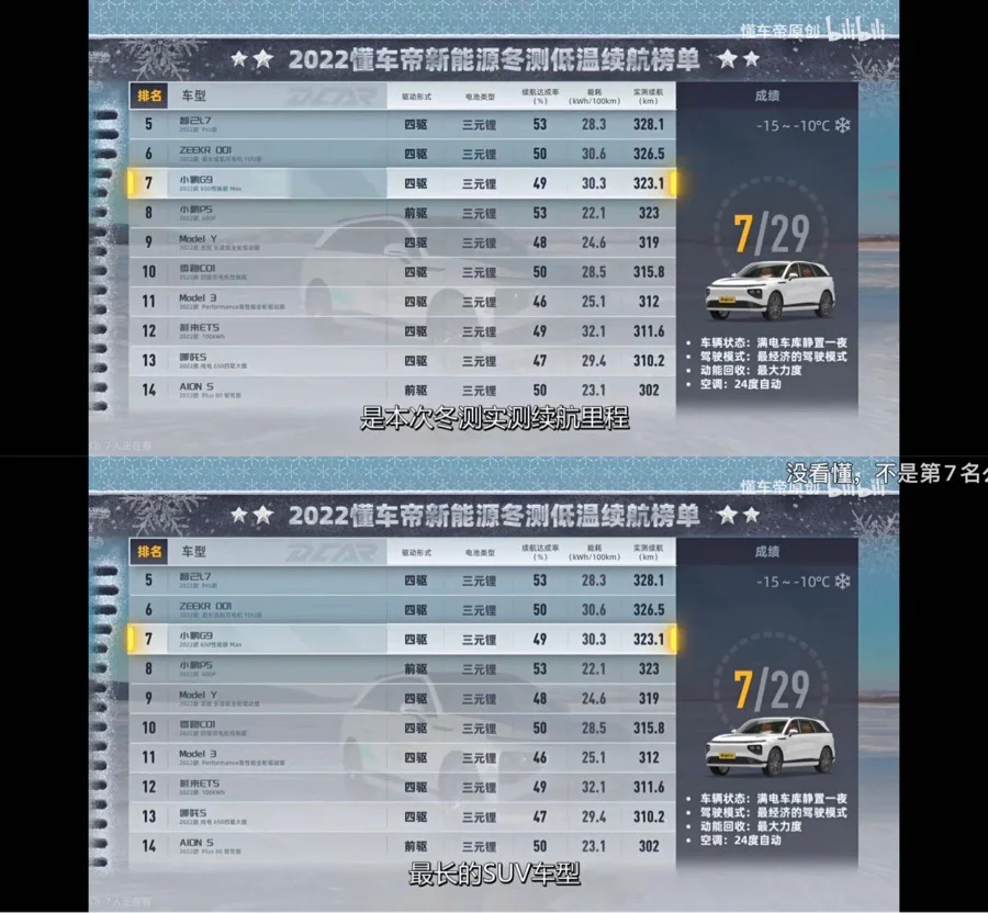 3.懂车帝主推的视频告诉你,G9冬季实测只能排第7,大肆宣传et7排第一多大牛B,大哥你真的当我们是傻子吗?100度电的et5只能跑第12,你意思是同样的电池,et7比et5大还省电?牛顿都被气得再死一百次!只要看,G9 650是所有SUV最远的就已经足够了。