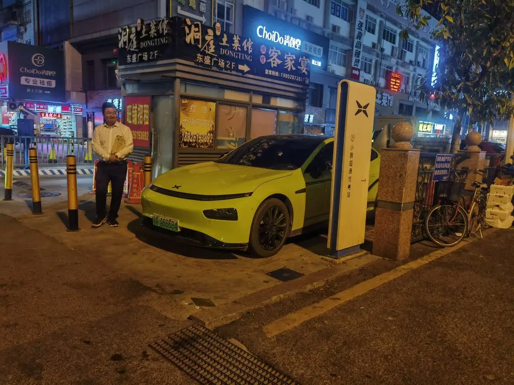 天河区车陂的东盛广场站打卡,没想到这个1号桩充电停车位还挺特殊的,在停车场外面,一开始还没找到
