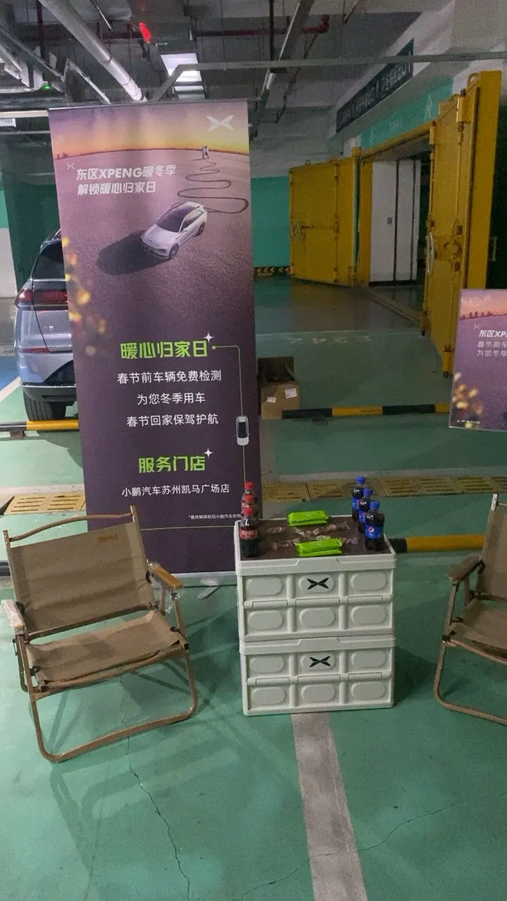 #华东区域冬日暖心之旅# 今天小胖虎正好没电了,顺路来到了苏州吾悦广场小鹏超充站这边做个快充,正好赶巧了,小鹏厂家在这里做暖冬服务,苏州凯马广场服务中心工作人员帮我贴心的做了车辆检测,添加了防冻玻璃水,还提供了免费小事和饮料,这服务绝对到位,为小鹏品牌打call,小鹏继续加电@小鹏汽车东区课代表