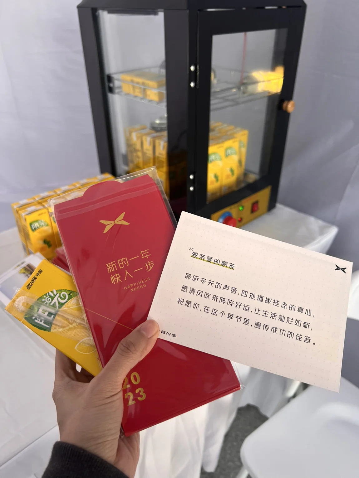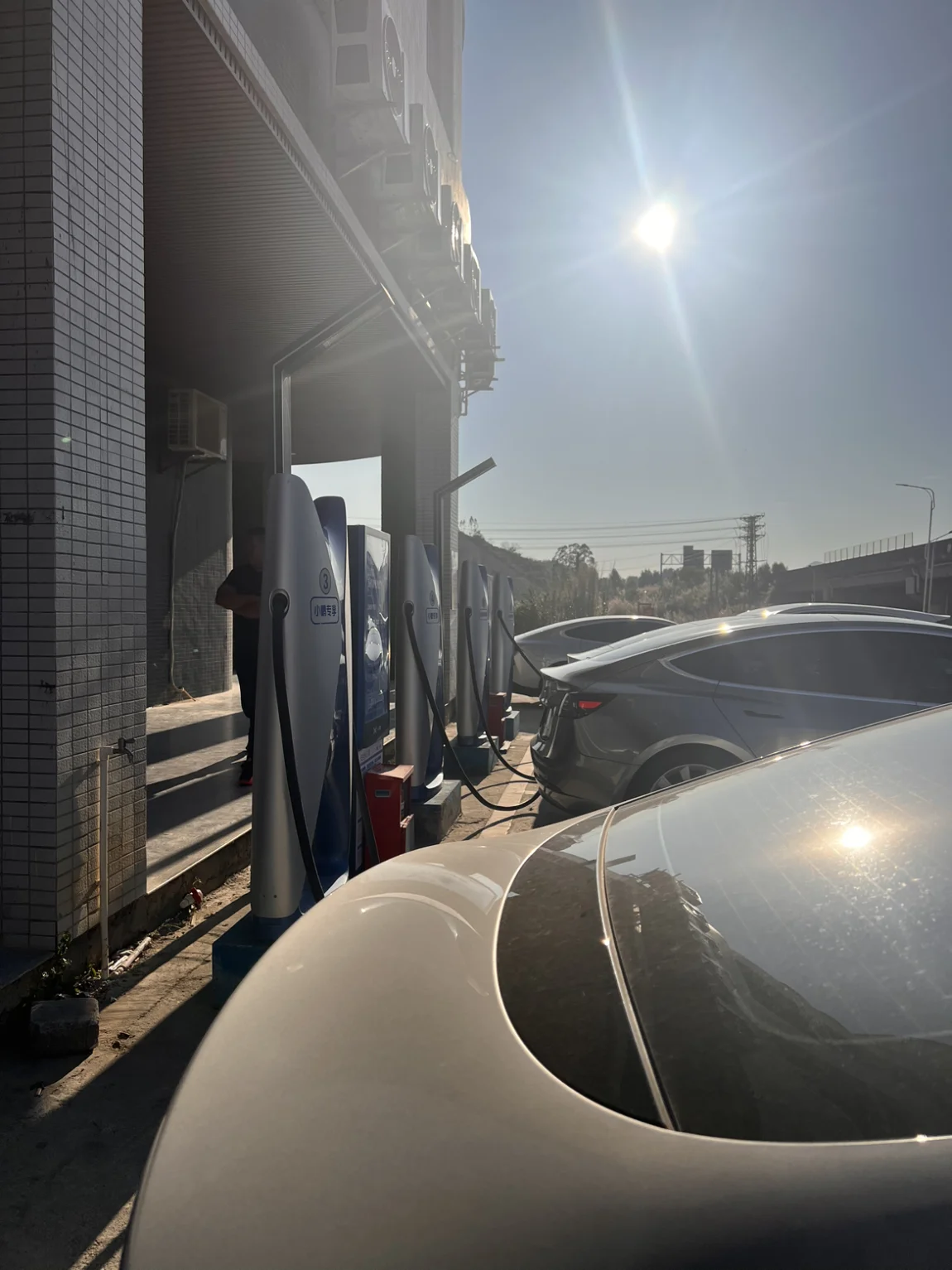 惊喜呀!【汕尾陆河美食城超充站】点赞👍刚堵了一个半小时下高速充电,小鹏工作人员居然有驻点,排队插电送礼品请喝柠檬茶一条龙服务。对比隔壁干巴巴的特斯拉充电站,是有那么点不一样的哈哈