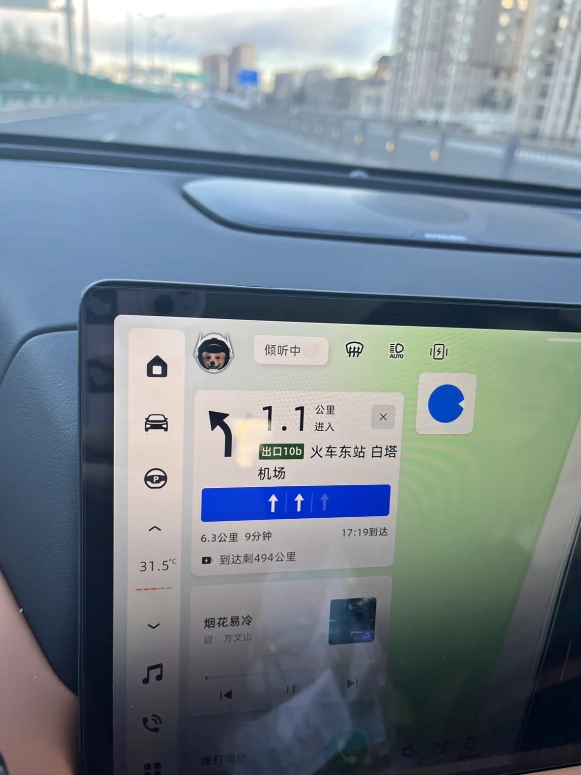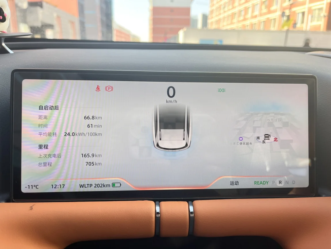 6.提车没多久就大幅降温,基本零下十五到零下二十度,市区电耗21左右,空调按摩音乐几乎全程开,续航大概三百多。短途高速零下十六度去程电耗27左右,回程零下十一度电耗24左右。
