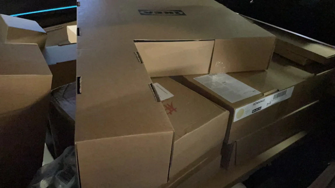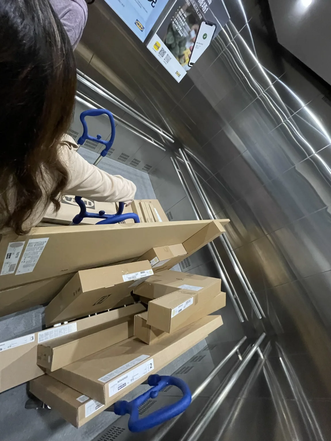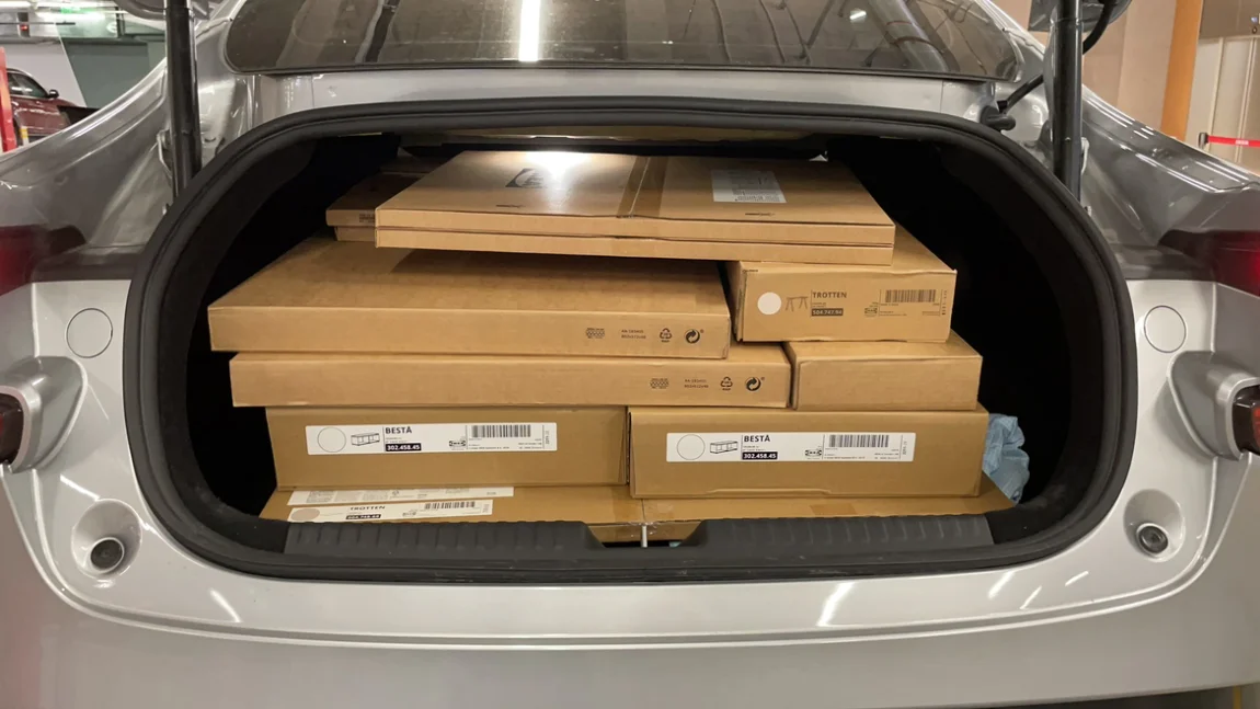 P7后排座椅放倒还是很能装的,一个1.8+0.6米的电视柜,一张1.8米的餐桌,一张1.6米的书桌,四把椅子,后备箱刚好满了,后排座椅上方还能再放不少东西👀