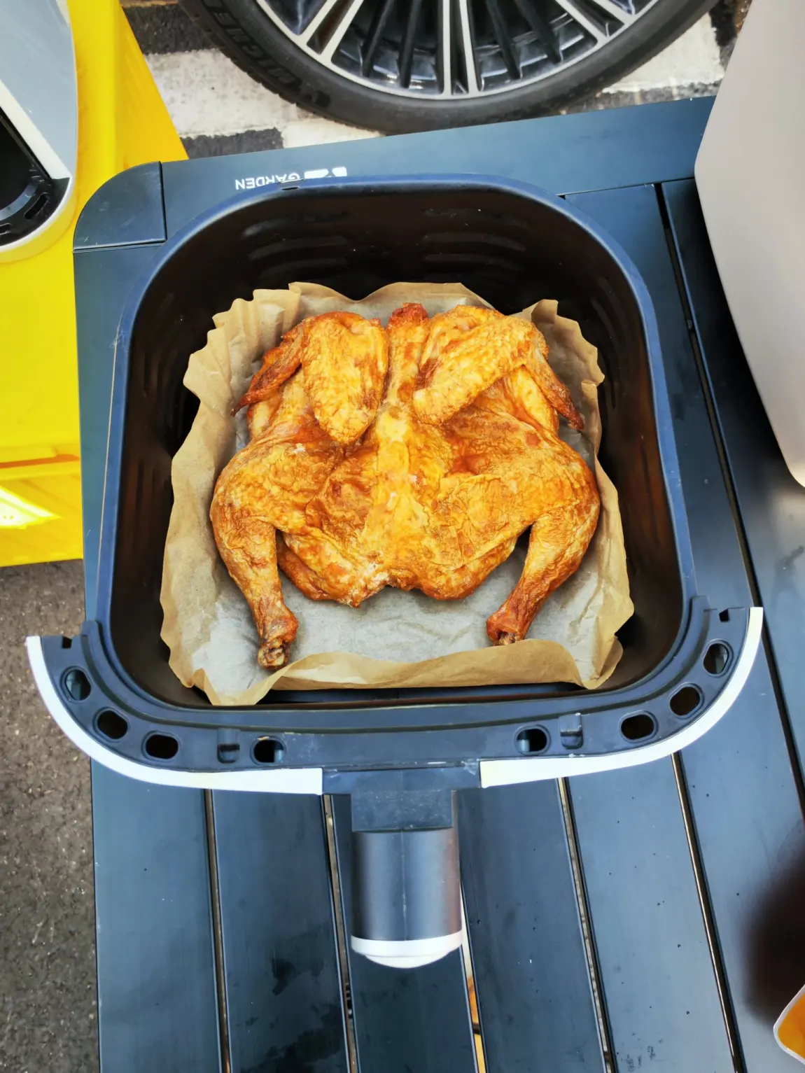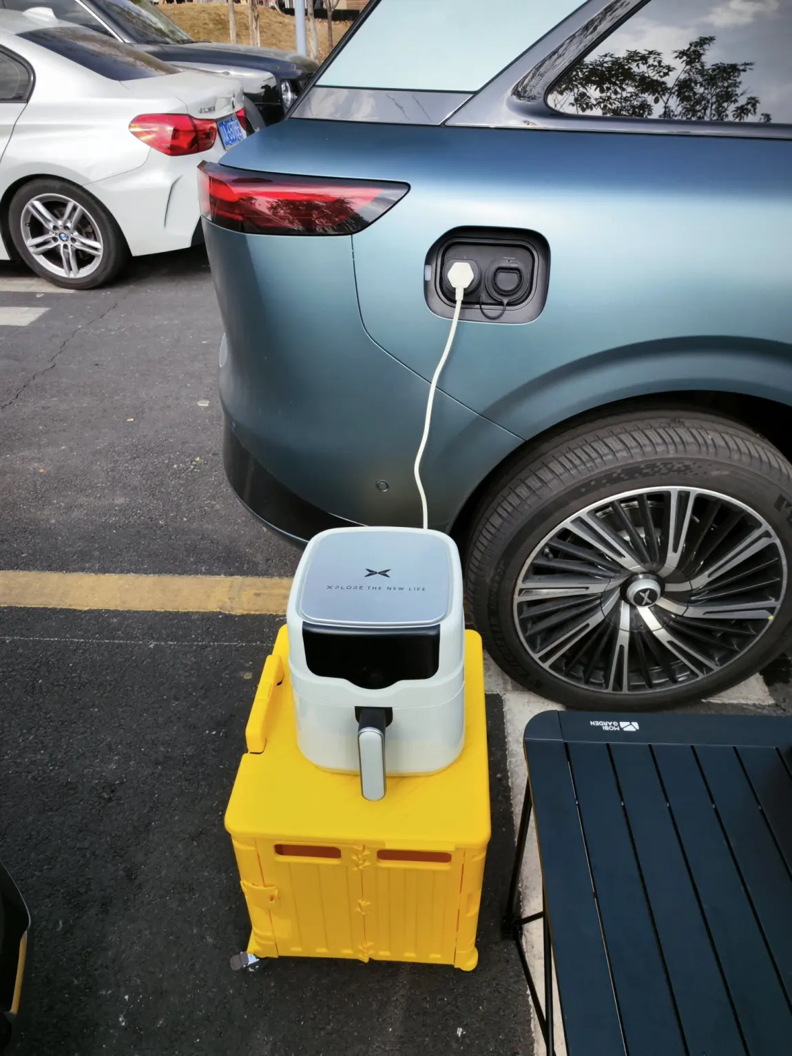强烈推荐小鹏空气炸锅,非常方便,出行烤鸡烤鸡块超级方便,再加上小鹏汽车的外放电,走到哪里那里就是厨房!