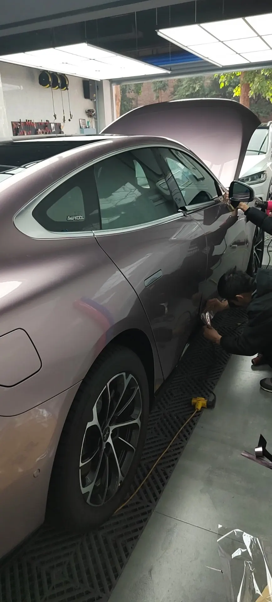 前两天把玻璃太阳膜贴完了,因为重庆比较热,贴的是非常好的玻璃太阳膜。我贴的是冰莓粉,因为我的朋友买的汉ev贴的是纯粉色的,他建议弄个冰莓粉一起出去耍。周六很早就开车过来盯着贴了,一方面自己学习一下贴膜,另一方面自己也监督检查了一下毕竟花了这么多钱贴的ax品牌改色膜,膜的质量也不错挺好的,贴膜的时候细节的处理非常的好,真是太厉害了。耳朵,师傅建议贴成黑色,这样点缀一下好看。接下来,就等着我的幸运车牌号了,临牌真的出入车库太麻烦了,哈哈。[呲牙][呲牙][呲牙] 车子的改装改色就告一段落了,后面有想过弄19寸轮毂,大家有何建议[耶]