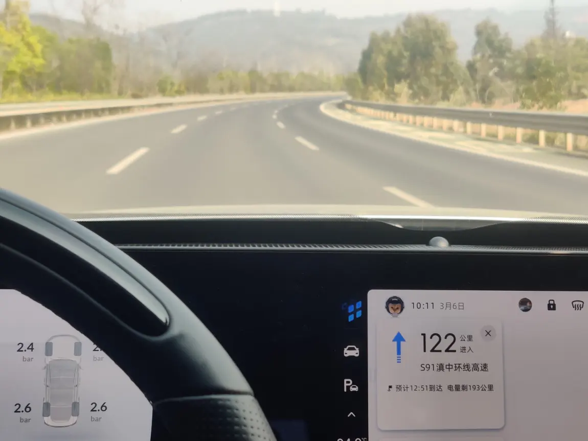 满电,是不需要中途加电就可以下高速的,所以在高速上没有太留意服务区,但是印象中,因为是新开的高速,很多服务区都没开,修建中