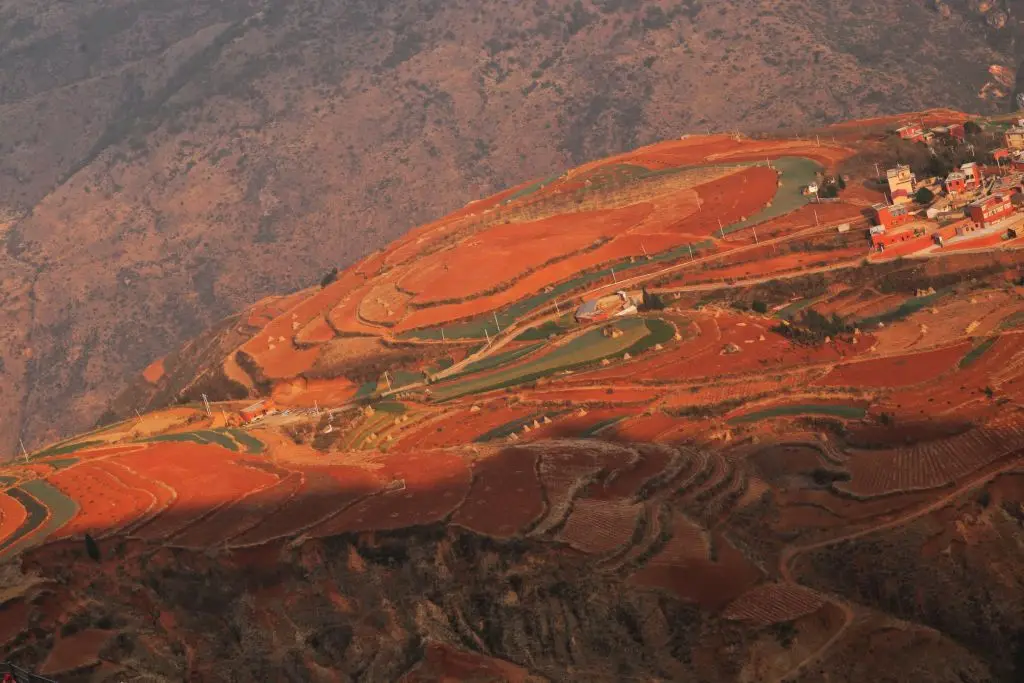 落霞沟,名副其实就是在4-5点在夕阳下看看红土地,以及山谷里的红房子的村庄。五点后太阳不热情,土地也不红了