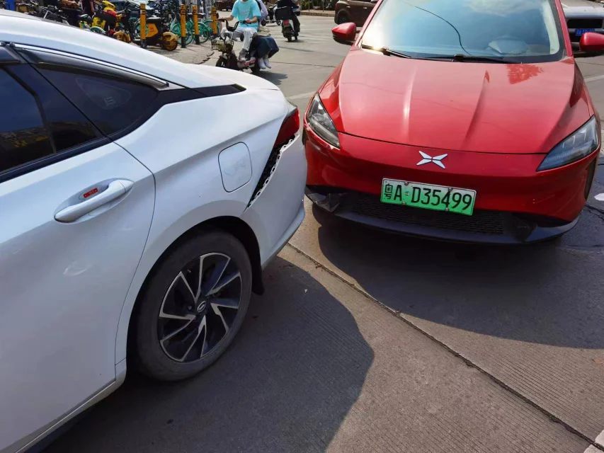 G3追尾广汽传祺!轻轻一碰传奇屁股就爆了!还好小鹏G3比较硬只是掉了一点油漆.