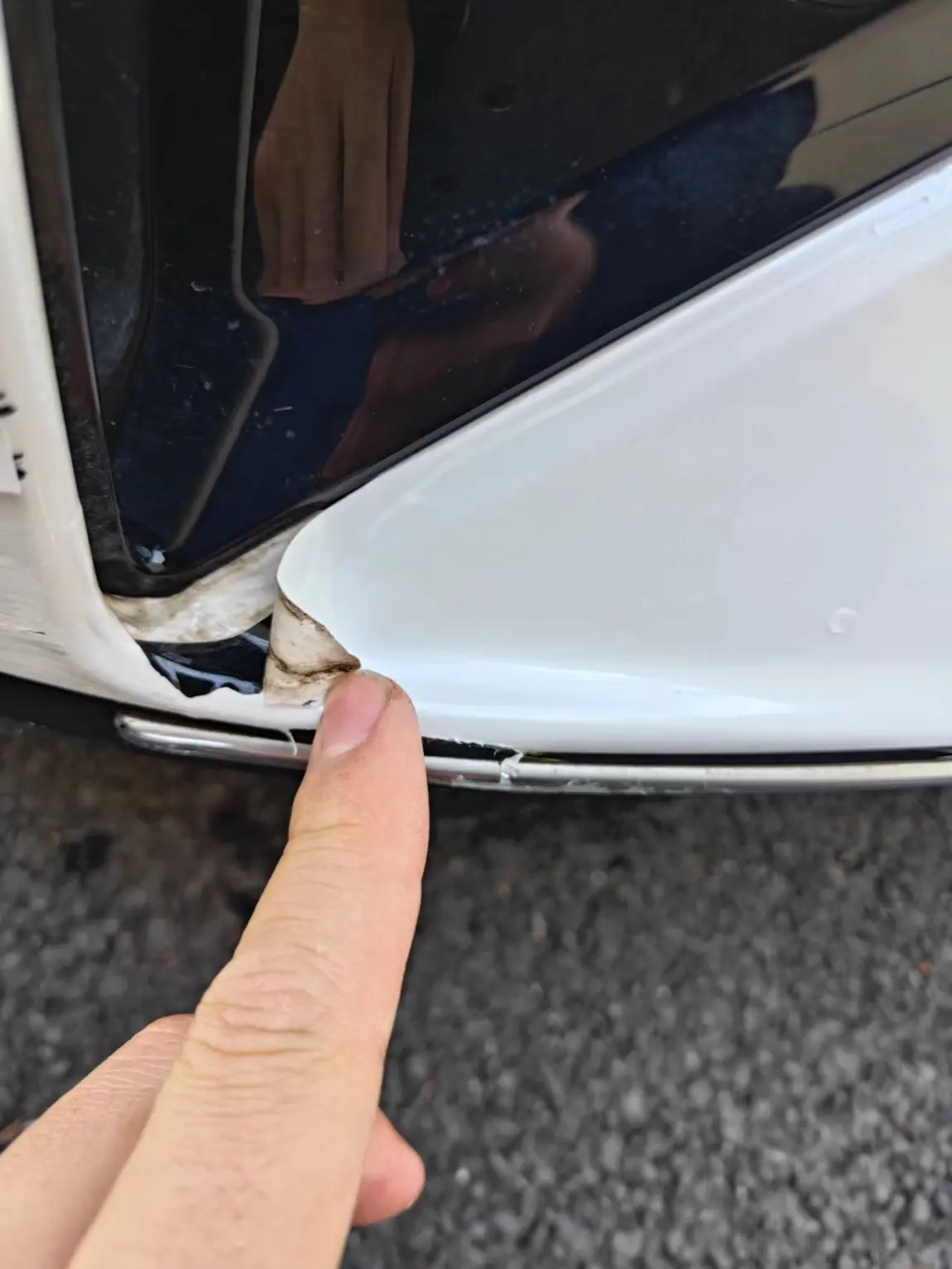 2⃣施工:这就需要熟人熟手帮忙了,这里就不建议自己弄了,毕竟撕膜取膜贴膜都是技术活,自己如果没有学过是没法弄的。首先用刀切块破损地方,撕下破膜。再用风枪加热取膜的地方,用刀裁剪下来。最后再用风枪加热贴上修复处,用刀裁边即可。图里有几处我的施工分享供参考。