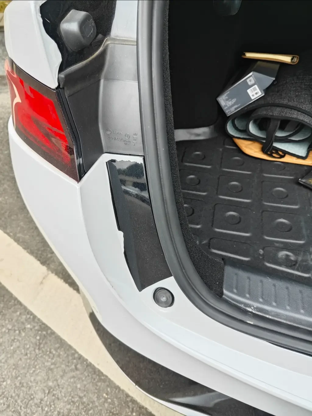 1⃣补膜材料:就地取材。补膜材料是关键,用原装膜是最好的了,除了官方给你补发,不想花钱就只能从车身上取。有几个地方可以参考:车顶(撕下来后就成了悬浮车顶);后备箱内侧;车辆侧杠。这些地方一般都会留有冗余的膜,或者撕下来也不违和。