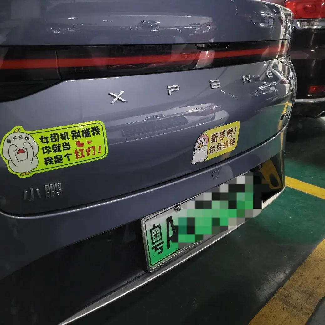在与“蓝鹏友”一起的蜜月期里,因为我的驾驶还不甚熟练,难免出各种小状况,至今仍在小心翼翼地学习和磨合,很多智能化的辅助工具未有时间(也未有胆量)去实践。为了应对广州复杂路况中各位不耐烦的老司机,我还在车尾贴上可爱的磁帖,求生欲拉满。