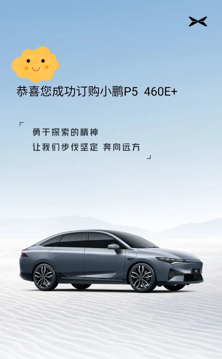 一开始是冲P7的颜值去的,无奈预算有限,只能放弃。后来销售建议P5,空间大,辅助驾驶无敌,试驾了几次直接pass比亚迪。晚上去同一商场吃饭,又去瞥了一眼,P5可爱的造型越看越顺眼~