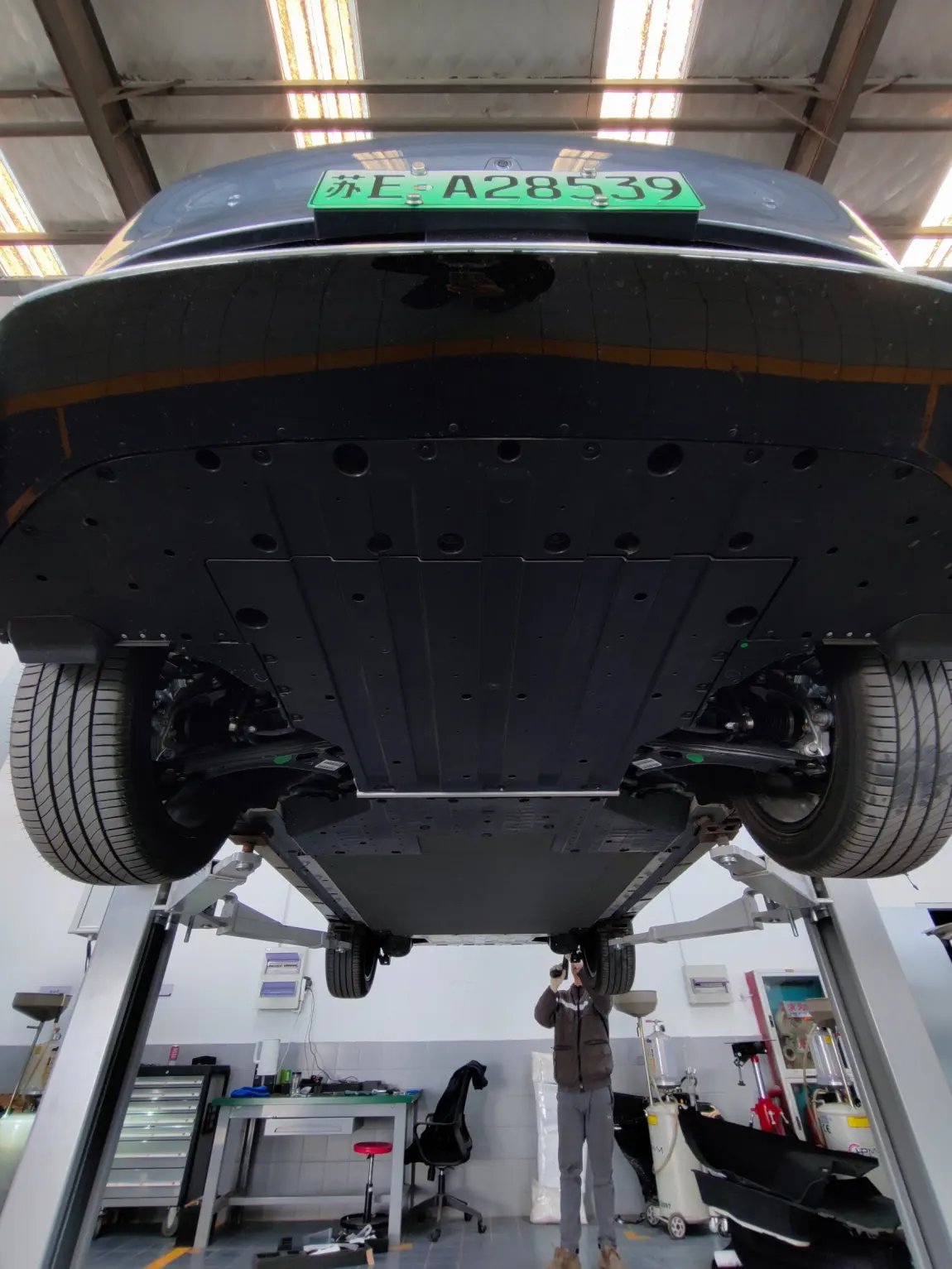 售后中心工作日人不多,电尾门全程用积分换就行,共22800积分。直接买也一样,1884设备费+396工时费。安装时间大概1.5-2h🕚,我还拍了张底盘照片~