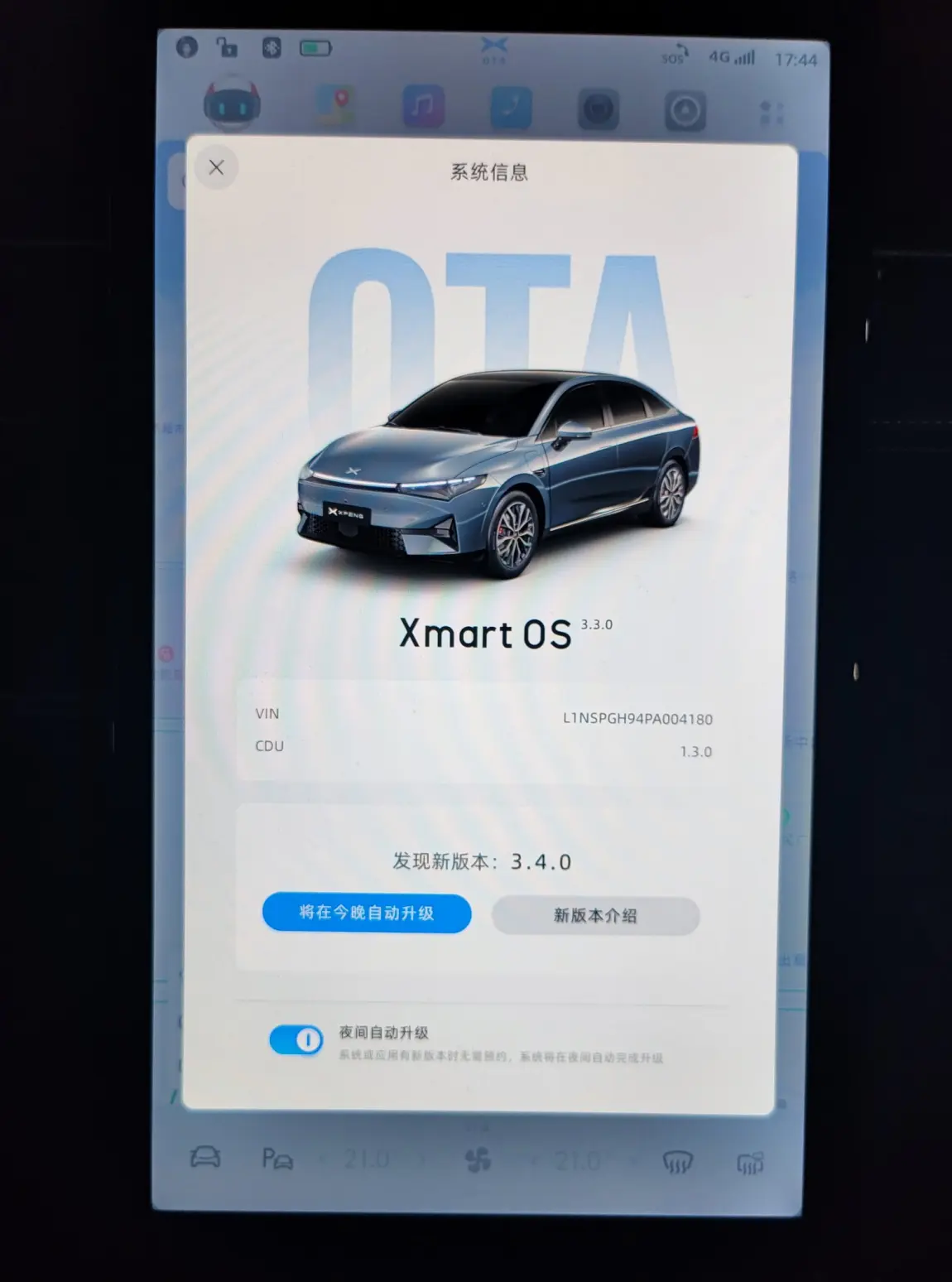 1⃣️系统OTA升级。(中控屏小鹏标志变蓝表示即可升级)