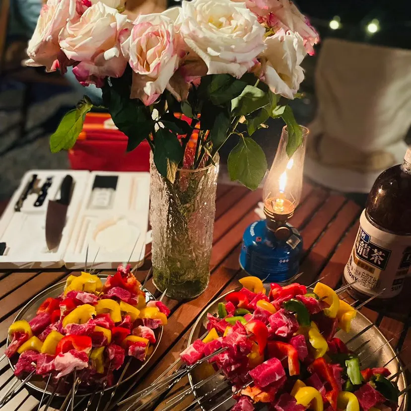比较适合用电的是铁板烧烤,准备的肉比较简单,不像烤串需要串肉串,直接准备好肉和酱就好了,聊着天、喝着小酒、吃着烤肉!(酒后请勿开车)