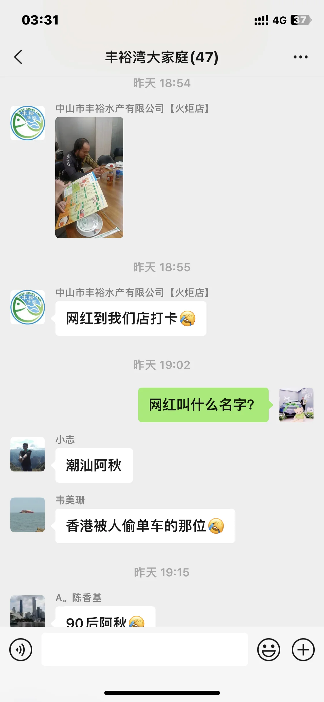网红“潮汕阿秋”昨晚打卡我们中山丰裕湾火炬店,品尝我们家特色正宗脆肉鲩,而我完全不知情,全靠店长抓拍后查实,才知道是“网红”潮汕阿秋,骑着他的心爱单车来到火炬店。 如果还有梦,那就带上灵魂出发吧。