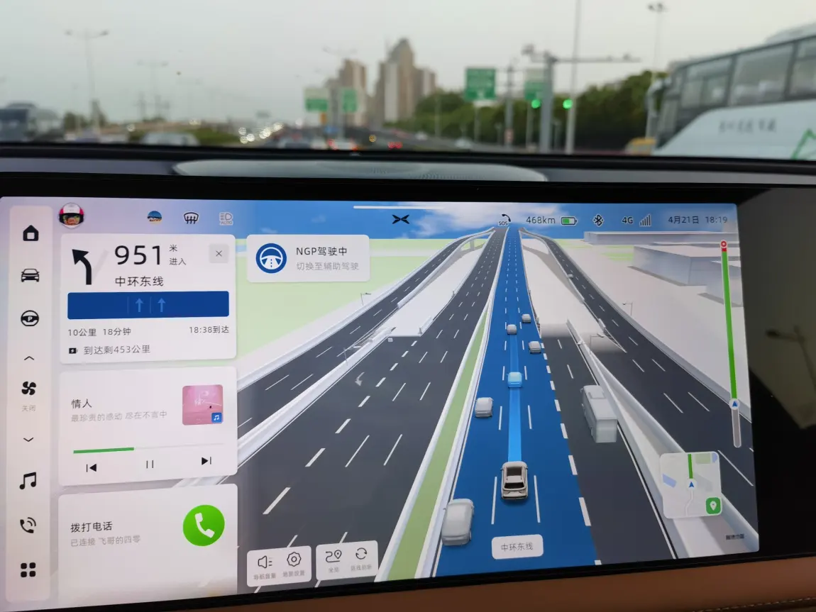 第四就是我一直赞不绝口的城市NGP了。不过由于我不是MAX版本的,所以这次升级没有太大的变化感受,反正就是一如既往的好用。城市NGP在堵车的时候,简直就是太爽了,只要打开NGP功能,你就可以解放双脚,放心大胆的交给小P去执行就可以了。当然在中控的显示方面,也增加了显示模块,既可以选择之前的俯视的模式,也可以选择地图一样的模式,选择更加多样性。