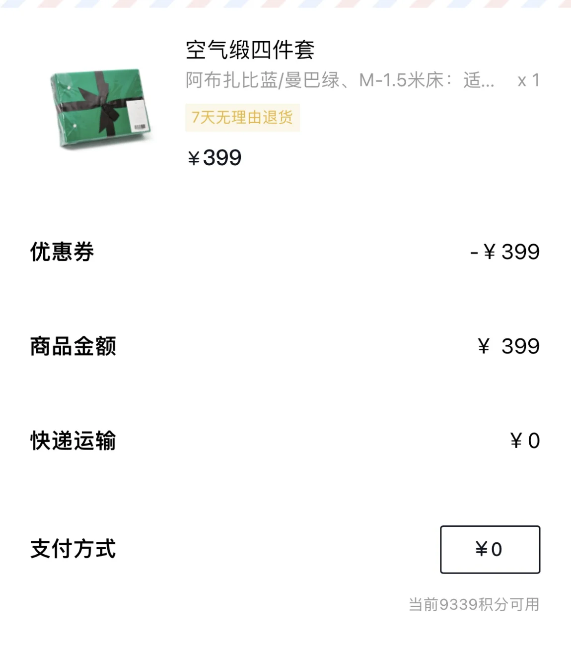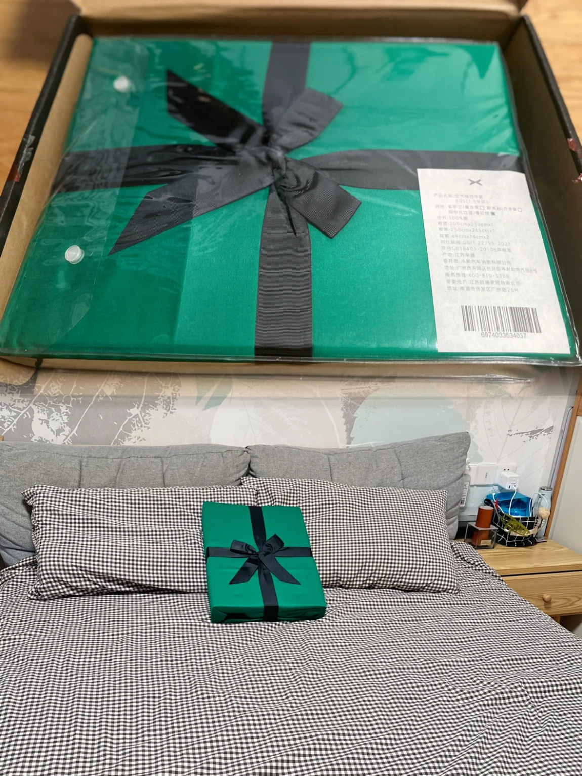 这个床品写着空气缎,这是我第一次听说,非常好奇,而 1.5 米不正好适合我的床嘛~于是立马在评论区留下了我的体验申请~很幸运得成为了这一次的体验官☺️迅速兑换完商品,就坐等快递上门咯!