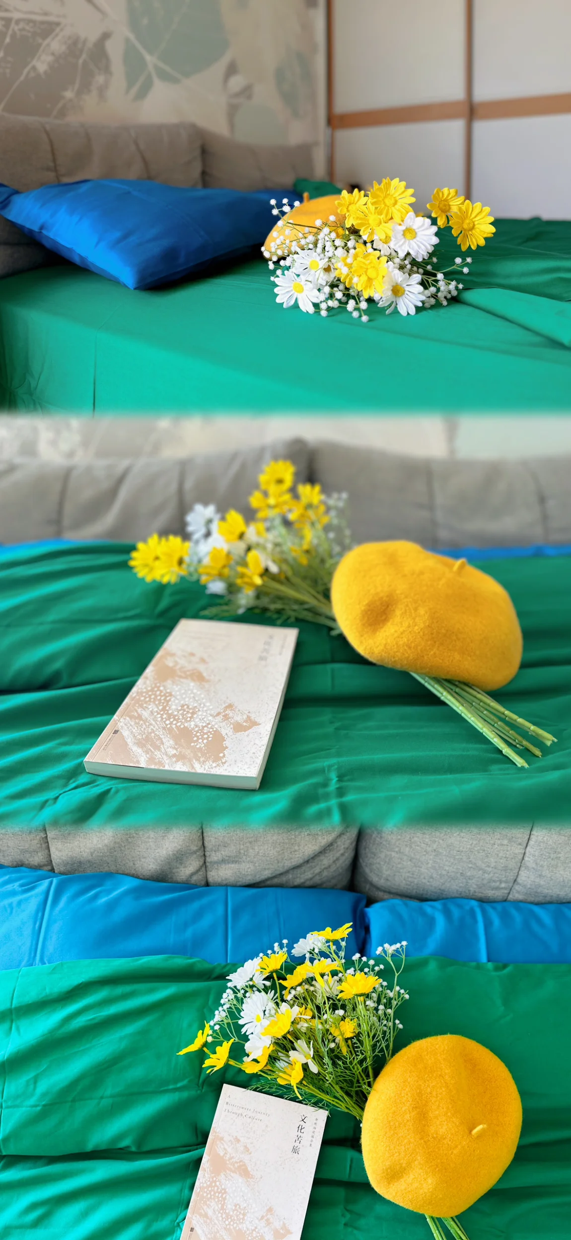 这款布料还泛出微微珠光,很有质感,摸上去也是柔软丝滑。看惯了平日里素雅的色彩,阿布扎比蓝和曼巴绿这浓郁的色系,瞬间让它成为卧室中最鲜亮的一角。接下来就是换装时刻!